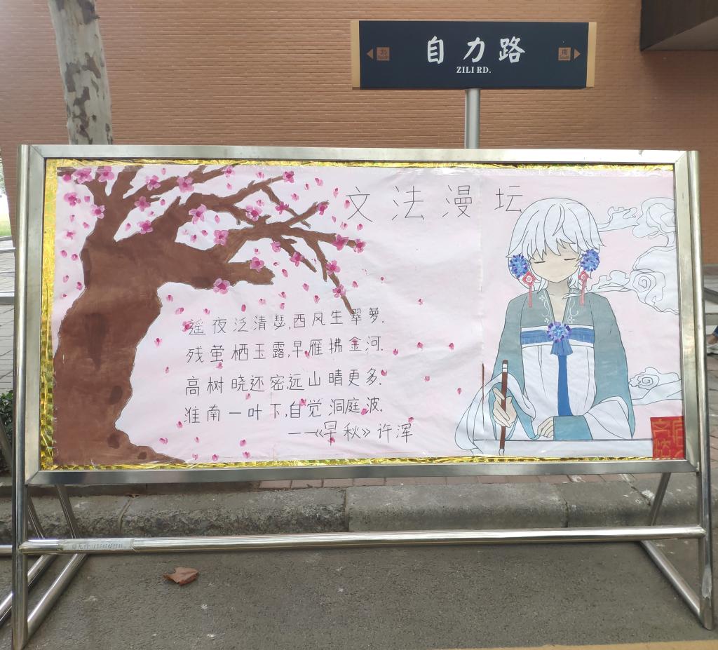 本次活动分为五期,持续六周,宣传上主要以展板形式开展。此次活动内容丰富新颖,并且加入了漫画元素,提高了同学们对本次活动的积极性。在第一、二期活动中,有与公司校门口的石狮子相关的典故和诗词《早秋》等内容,将诗词与漫画相结合,诗与画相交融,让人有身临其境的感觉。中华优秀传统文化与现代艺术的结合,创新了弘扬中华优秀传统文化的方式,更贴近同学们的生活。在第三、四、五期的活动中,有康德、布鲁纳关于法律的名言和法律知识的宣传,生动形象的漫画更是吸引了许多同学驻足观看,达到了很好的宣传作用。