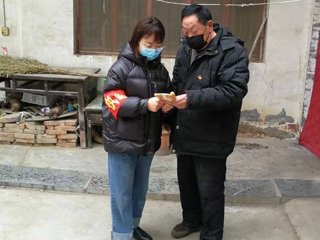 生命重于泰山,疫情就是命令,防控就是责任。经过村委会批准,她正式成为一名疫情防控志愿者,与村干部和党员一起在卡点处把守路口,她每天中午12点到下午6点,对过往行人进行消毒、测体温、登记,对异地车辆和非本地人员劝返等工作;手拿宣传册入户对老年人讲解相关知识,告诉他们“少出门,不聚集,讲卫生,勤洗手,勤通风,有症状,早就医,不恐慌,不传谣。”工作中,她不怕苦、不怕累,耐心地宣传、解释,为当地顺利开展防疫工作做出了贡献,受到村委会和群众的高度赞扬。