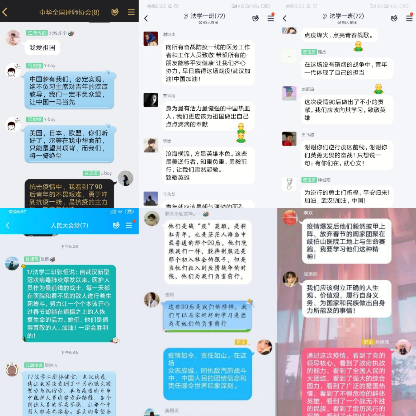 18学本二班的赵晓花同学说:“恰同学少年,风华正茂。90后、00后在疫情期间展现出高度的担当与责任感,说明了“90后、00后不是娇滴滴的一代”。习近平总书记给北京大学援鄂医疗队全体“90后”党员回信表扬了新时代青年在疫情防控工作中的作用,总书记的话语重心长、言犹在耳,我们必当向这些90后、00后的同龄人学习,砥砺前行,奋发有为!”