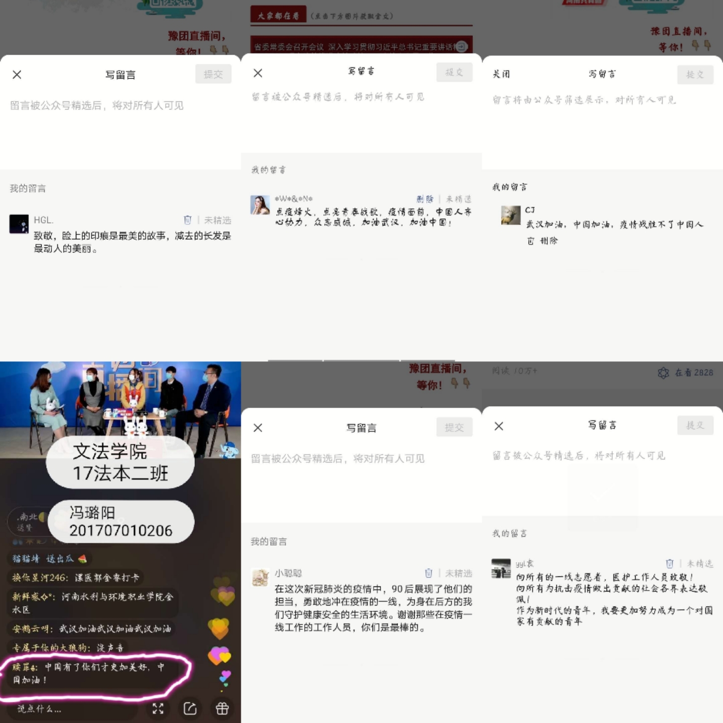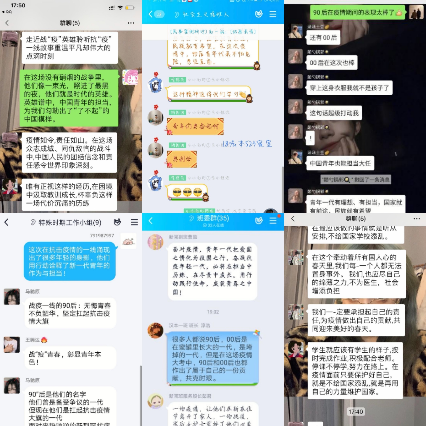 通过观看本次直播,聆听战“疫”故事,同学们感触颇多,纷纷展开线上交流,讲体会、谈收获、话成长。