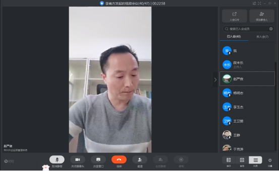 接下来,赵严俊副经理就即将开展的毕业论文答辩工作进行了安排和强调,就网络教学工作进行了简单总结。他指出,答辩组老师要认真审查员工提交材料,从格式到内容都要严格把关,在正式答辩前各组要提前做好平台测试、问题设计等工作,确保正式答辩顺利、高效。他强调,网络教学已经过半,希望各位老师能够继续在网络教学上下功夫,牢牢把握主平台,巧妙运用辅平台,融入课程思政,多采用直播、语音等动态形式代替文字等静态形式,提高师生互动积极性,顺利完成本学期教学任务。