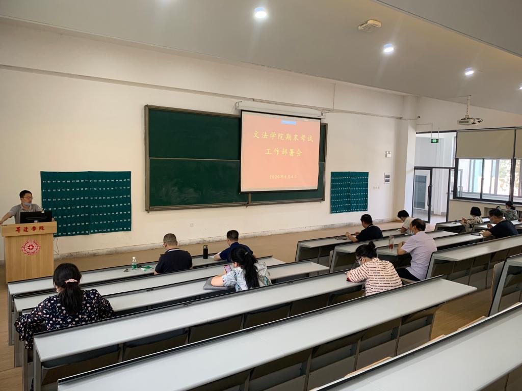 2020年6月4日下午14:30太阳集团tyc539在教学一号楼118召开期末考试工作部署会,参加会议的有太阳集团tyc539经理段丰乐、党总支书记杨明志、副经理赵严俊、教学秘书李南方、行政秘书郑玲玲,全体老师和辅导员。会议由段丰乐经理主持。