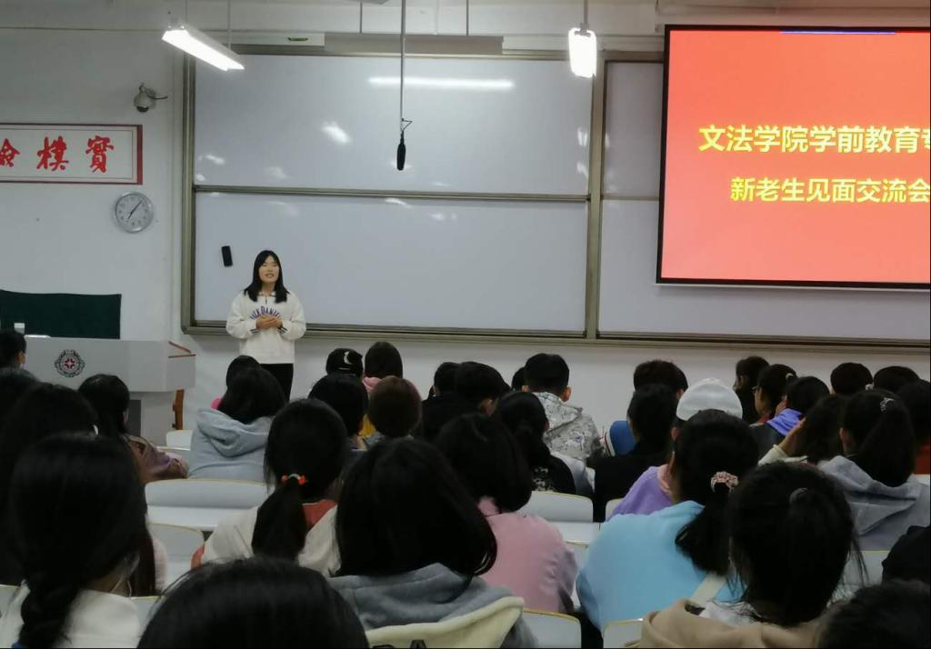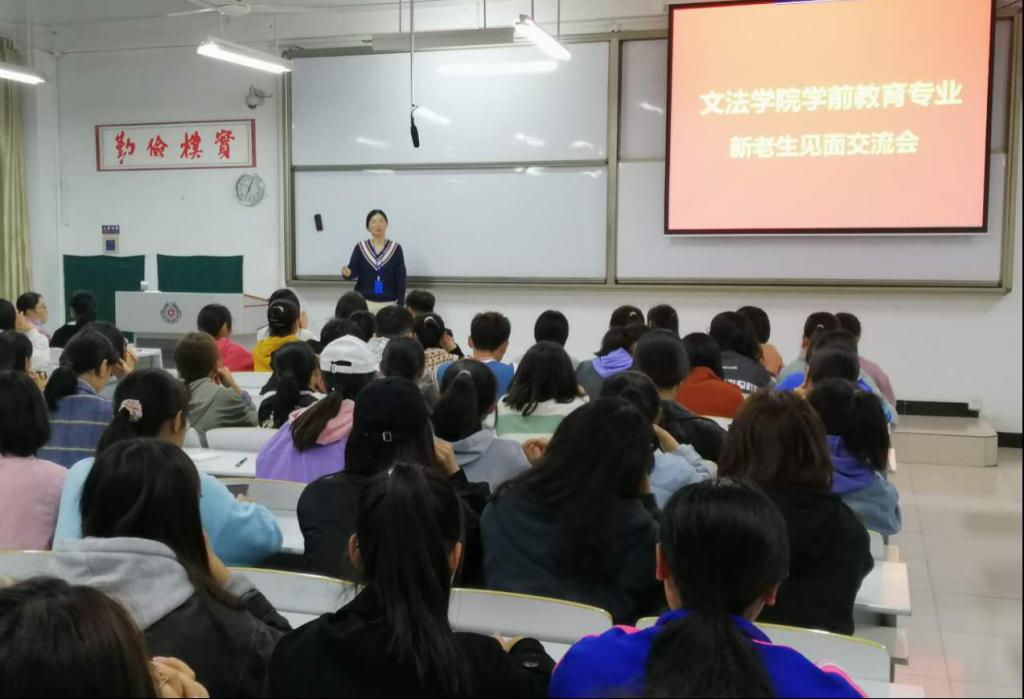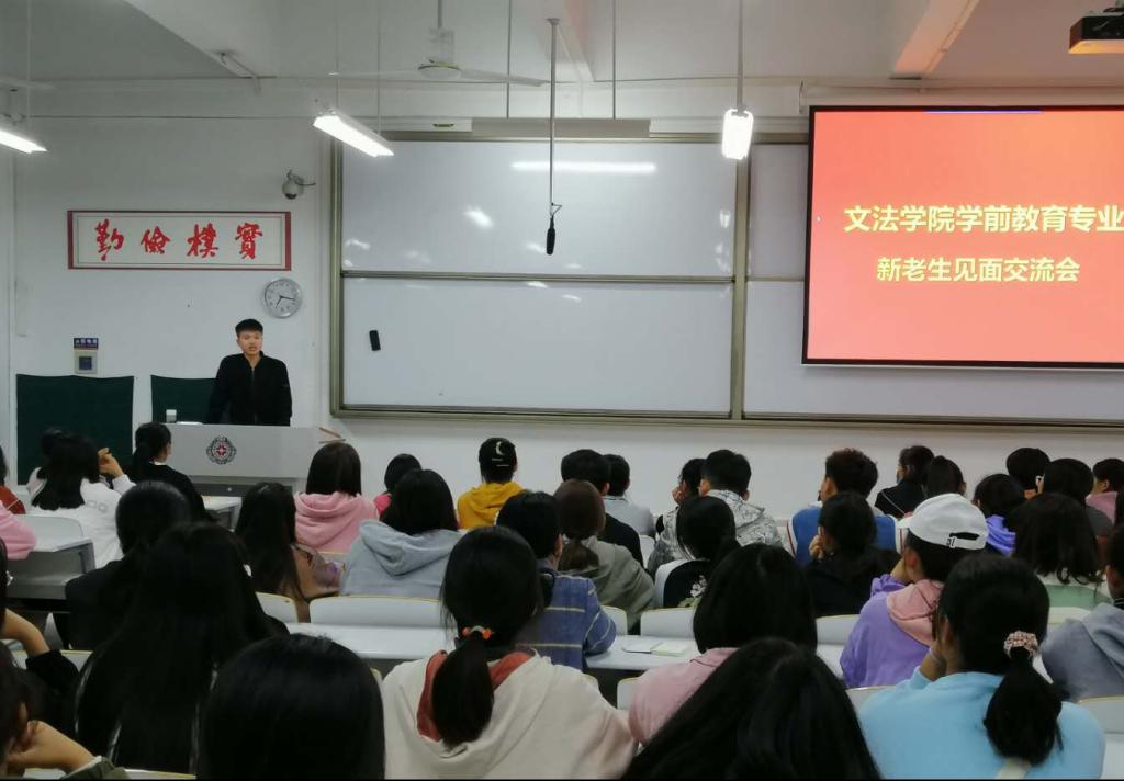 2020年10月13日晚19:00,太阳集团tyc539学前教育专业新老生见面交流会在道镕楼107教室举行。学前教育专业毛玉凤老师主持交流会,2016级、2017级学前教育专业关晓贵等优秀员工代表和2020级本专业全体新同学参加了交流会。