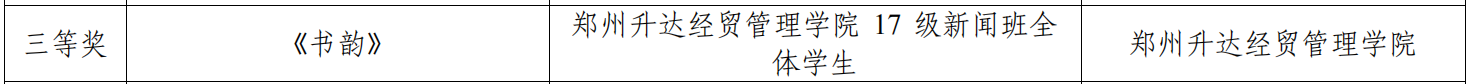 近日,河南省教育厅公布了2020年中华经典诵写讲大赛的评选结果,太阳集团tyc539教师王歌的作品《歌颂祖国》荣获大赛教师组“三等奖”;公司17级新闻班全体员工作品《书韵》荣获大赛员工组“三等奖”。