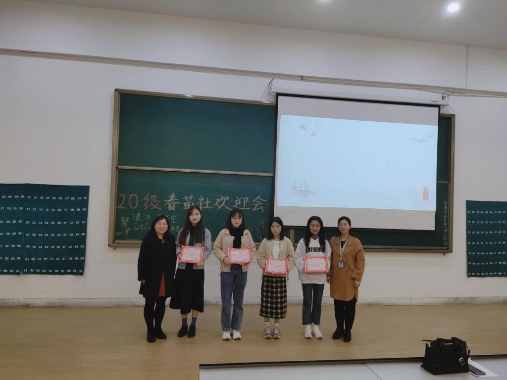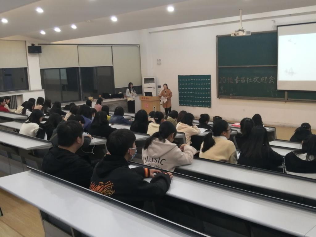 首先由19级副社长曹可娟宣布欢迎会正式开始,接着由杨春艳老师讲话,先对新社员的到来表示欢迎,又分别从学习民俗文化的意义、方法以及春苗社的宗旨和职能进行介绍,最后对春苗社的发展壮大寄予希望。刘叶青老师发言提到大家应该多多了解自己身边的民俗文化,提高思考、交流协作能力。紧接着由两位老师为18级社团优秀干部颁奖,并合影留念。之后18级社长濮素雅发言分享了她在社团的收获和感受。此外,社团各部门的部长还介绍了各自部门的职能,并组织新社员进行民俗知识抢答、才艺展示的互动环节,现场氛围轻松融洽。本次欢迎会在一片欢声笑语中圆满结束。