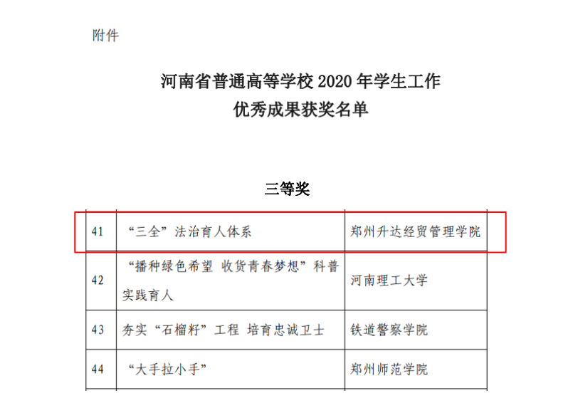 热烈祝贺太阳集团tyc539“三全”法治育人项目荣获2020年河南省普通高等学校员工工作优秀成果三等奖