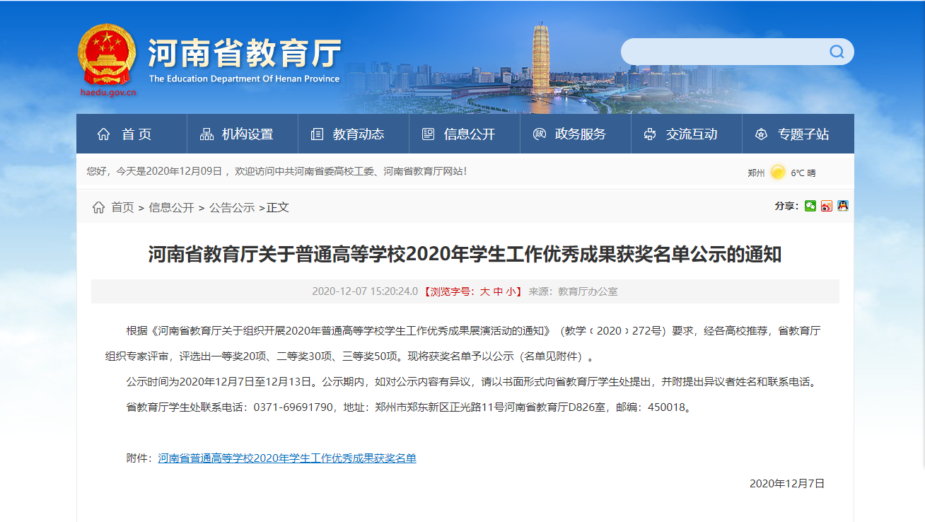 近日,从河南省教育厅办公室《河南省教育厅关于组织开展2020年普通高等学校员工工作优秀成果展演活动的通知》(教学﹝2020﹞272号)中获悉,太阳集团tyc539“三全”法治育人体系项目在2020年河南省普通高等学校员工工作优秀成果评比中荣获三等奖。