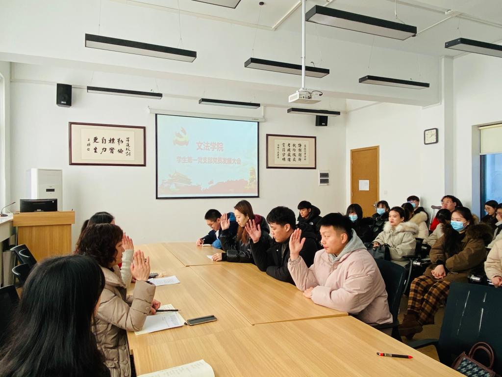 会上,王松洁老师向大家介绍了本次党员发展大会的会议流程,强调了此次会议的重要性和严肃性,会议严格遵守党组织接受预备党员的程序。李书雨等12名发展对象依次在大会上就一年来的思想、学习和工作等方面内容向党组织做汇报,报告了对党的认识、入党动机、本人履历、家庭成员和主要社会关系情况、现实表现等,各入党介绍人对其思想、学习、工作等方面做出中肯评价,并对其能否加入中国共产党表明意见。同时支部委员会向大会报告了关于李书雨等12名发展对象的综合政审情况,经与会党员充分讨论,并由全体正式党员现场投票表决,本次支部大会同意接收李书雨等12名发展对象为中共预备党员。