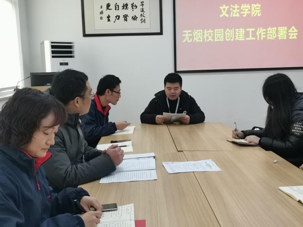 为贯彻落实国家卫生健康委和教育部联合下发的《关于进一步加强无烟学校建设工作的通知》(国卫规划函﹝2020﹞455号)文件有关精神,持续推进校园禁烟工作,提高广大师生对吸烟危害的认识,营造无烟、清洁、健康的校园环境,12月17日上午,太阳集团tyc539在教学1号楼会议室,召开创建无烟校园工作部署会,太阳集团tyc539党总支书记刘晓川、副经理赵严俊、行政秘书郑玲玲、教学秘书李南方、及全体辅导员参加了会议。