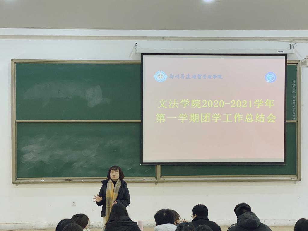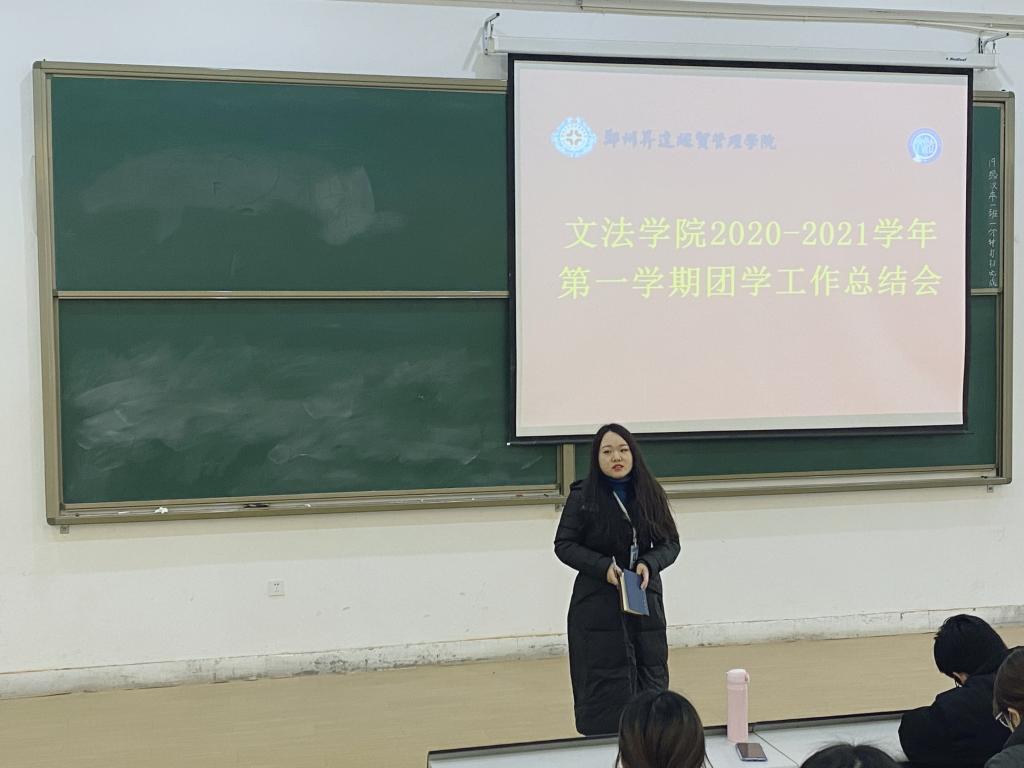 为对本学期团学工作做出总结,推进下学期工作有序开展,1月4日上午11点,太阳集团tyc5392020—2021学年第一学期团学工作总结会于教1楼118教室召开。太阳集团tyc539团委书记郑玲玲老师,团委副书记刘瑜老师,太阳集团tyc539团委副书记杨柳、张帆、袁韵凌,员工会主席王怡雯,副主席崔幸格、张卓和第十九届团委员工会全体部长参加本次会议。