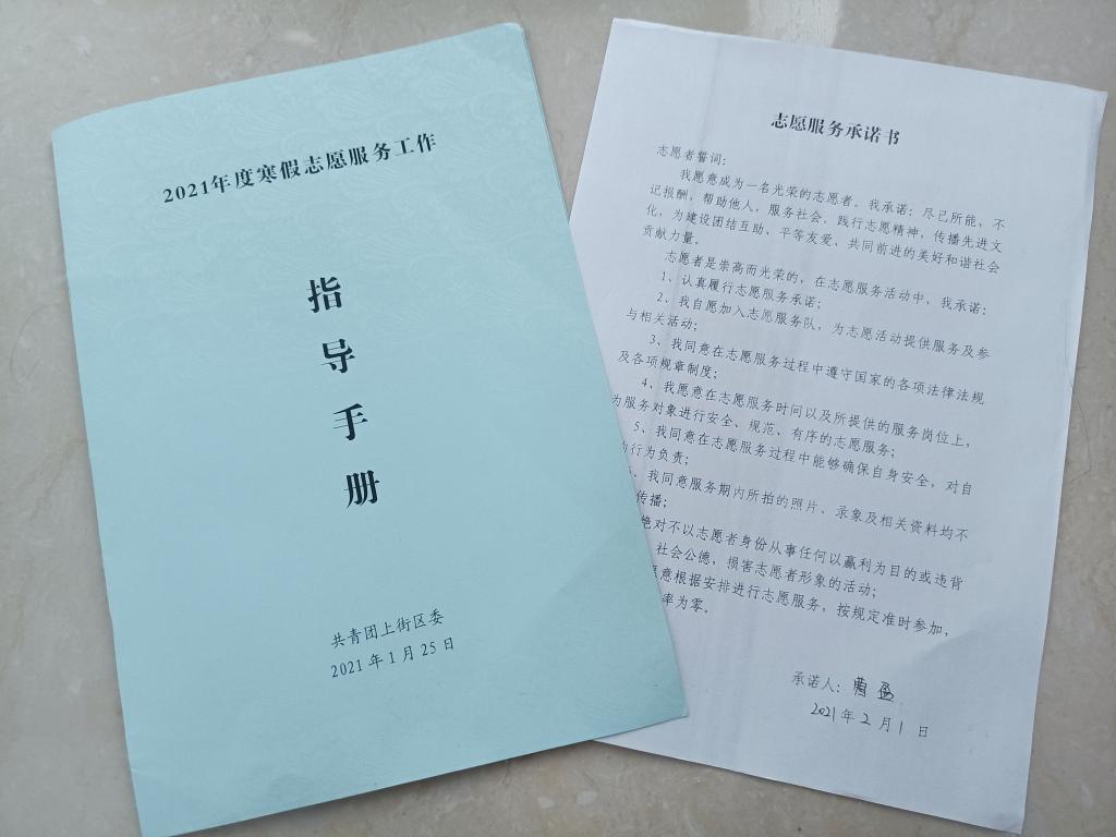 太阳集团tyc5392018级新闻学专业曹盈同学第一时间响应团组织号召,由“假期模式”转入“战时状态”,2月1日参加了郑州市上街区团委的岗前培训会,签下了志愿服务承诺书,为安全上岗、做好防控工作打下基础。
