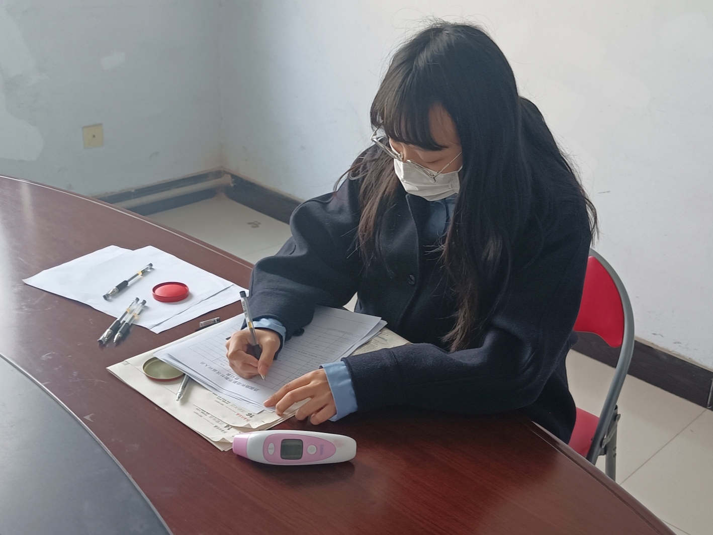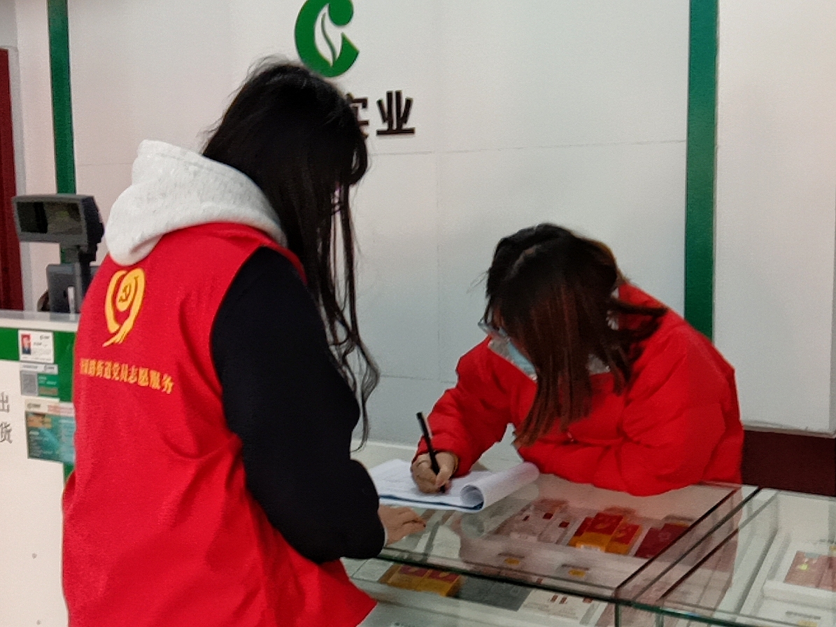 在志愿服务期间,曹盈同学与辖区党员志愿者穿梭在辖区的各个角落,根据社区防疫工作实际需要,进行楼院、门店摸排,志愿宣传,引导辖区居民减少聚餐、正确佩戴口罩、杜绝因排队而引起的人员聚集现象以及回家后正确的个人消毒措施等。同时,在春节期间,曹盈同学积极整理返乡人员相关资料,及时登记并报备流动人员,协助社区做好各项自查工作。