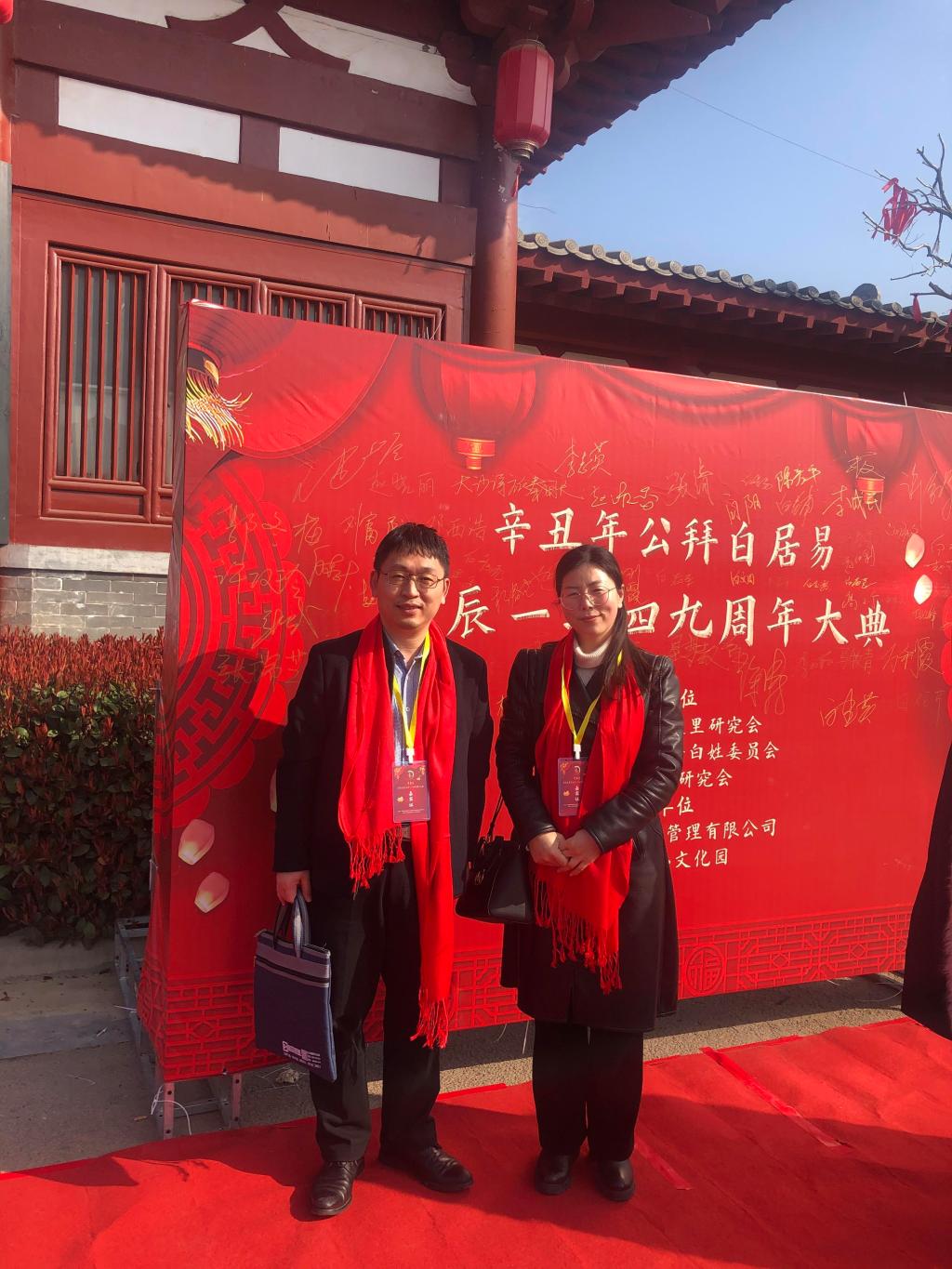 2021年3月3日上午10时至11时,太阳集团tyc539段丰乐经理应邀参加了在新郑市辛店镇白居易文化园举行的“辛丑年公拜白居易诞辰一二四九周年大典”活动,随行的还有太阳集团tyc539汉语言文学教研室主任杨春艳老师。该活动由河南省白居易故里研究会、河南省姓氏研究会白姓委员会和洛阳白居易研究会主办,由郑州白居易故里管理有限公司和郑州白居易文化园承办。