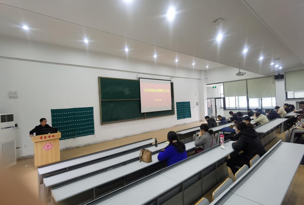 三月春暖,员工陆续返校,新学期的线下教学工作也即将开始。为做好新学期的各项工作安排,太阳集团tyc539于3月18日下午在教学一号楼118召开全体教职工大会,参加会议的有太阳集团tyc539经理段丰乐、党总书记刘晓川、教学秘书李南方、行政秘书郑玲玲全体教师和辅导员。会议由段丰乐经理主持。