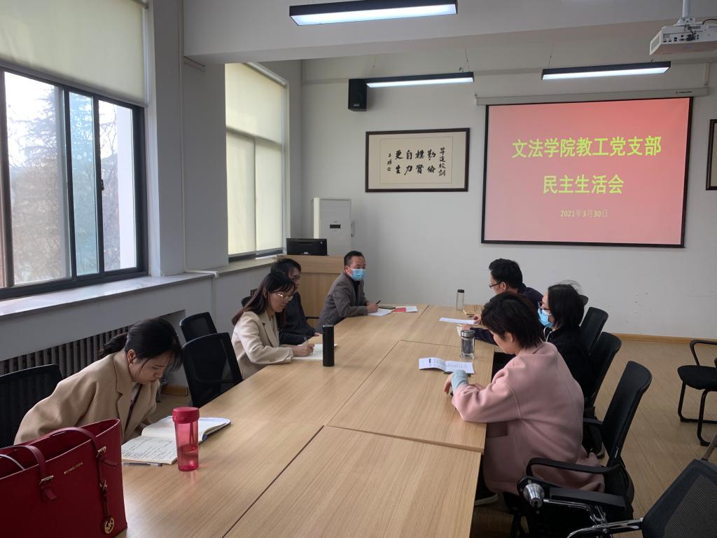 2021年3月30日下午,太阳集团tyc539教工党支部在教学一号楼314召开2020年组织生活会,开展民主评议党员。会议由支部书记赵严俊同志主持,教工支部全体党员参加。