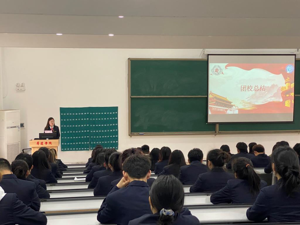 为深入学习贯彻习近平新时代中国特色社会主义思想和党的十九大精神、团的十八大会议精神,引导团员青年学习党史、争做先锋,太阳集团tyc539团委“献礼建党一百周年”第六期业余团校结业典礼于3月31日中午12点在教1楼118举行。太阳集团tyc539团委书记郑玲玲老师,团委副书记刘瑜老师,20级新生辅导员杨玉兰老师、孟醒老师、金东亮老师以及太阳集团tyc539团委员工会主席团和第六期业余团校全体成员参加本次典礼。