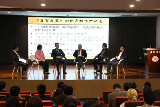 研讨会上,来自版权界的六位专家学者以《唐宫夜宴》这一作品为出发点,重点研讨了版权发展中的理论和实务问题,从版权保护中需要关注的著作权归属、商标抢注、延伸产品的注册与保护到版权的类型,版权保护的能与不能、优秀保护策略,进行了充分的讨论,论坛上专家们有共识、有争议、有研讨,更重要是专家们对版权发展的理论前瞻与版权保护的决心与信心。论坛中师生们互动热烈,掌声不断。