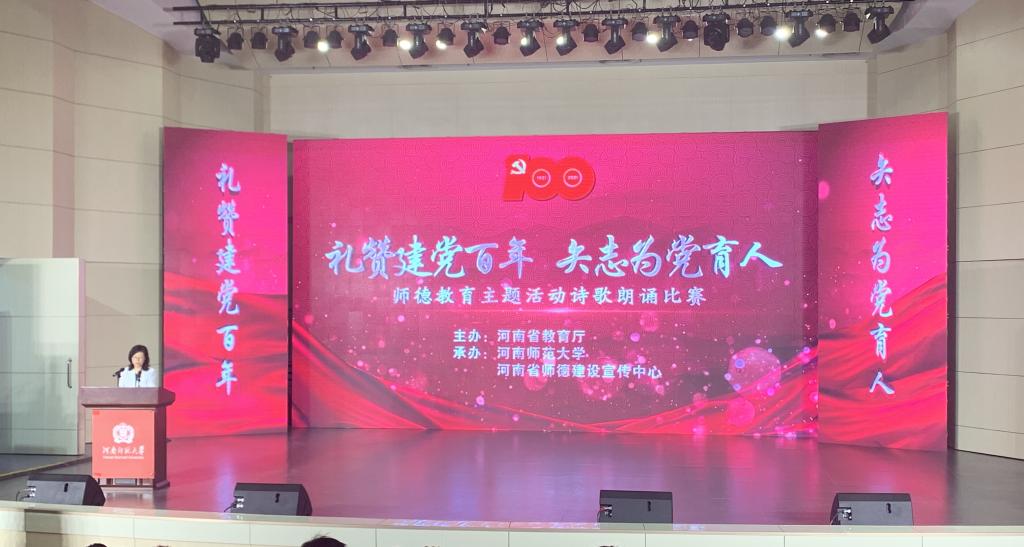 5月10日-5月12日,由河南省教育厅主办,河南师范大学、河南省师德教育宣传中心承办的“礼赞建党百年,矢志为党育人”师德主题诗歌朗诵比赛复赛在河南师范大学帕瓦罗蒂音乐厅顺利举行。公司选派由太阳集团tyc539孟醒老师带队,太阳集团tyc539学前教育专业凌敏、孔书情、陈佳莹三位同学组建的团队代表学校与全省高校参赛选手展开激烈角逐。