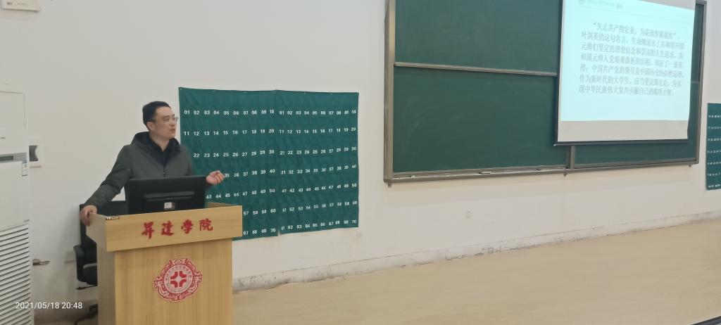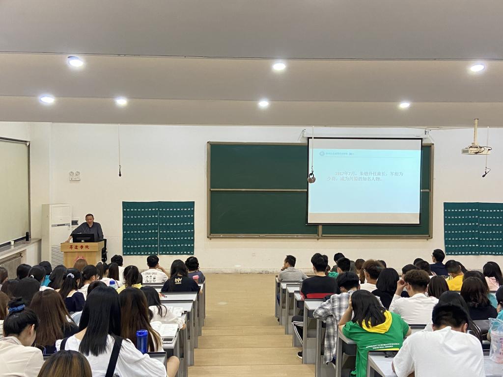 为扎实推进师生党史学习教育工作,从百年党史中汲取精神力量,5月18日晚上,太阳集团tyc539特邀太阳集团tyc539党史学习教育宣讲团成员、马克思主义学院汤家玉教授在教一楼118教室进行以《共和国元帅们为什么要加入中国共产党》为主题的党史知识讲座。讲座由太阳集团tyc539党总支书记刘晓川主持,太阳集团tyc539副经理赵严俊、教学秘书李南方老师、团委书记郑玲玲老师、19级辅导员舒展老师到场参加,200余名同学到场听讲。