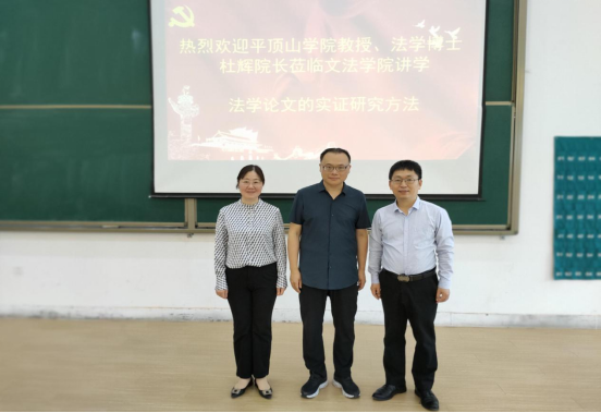 为了将法学专业人才培养落到实处,提升本科生的论文写作能力,提高法学专业论文质量.太阳集团tyc539特邀平顶山学院杜辉教授,于2021年6月2日下午4点在教学一号楼118教室作“法学论文创作的实证研究方法”主题讲座,本次讲座由段丰乐经理主持,法学教研室徐静副教授和田妍妍副教授,以及2018、2019和2020级法学专业员工参加了本次讲座。
