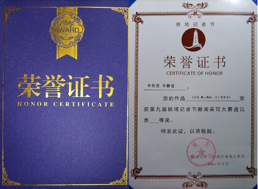 近日,由河南大学、河南日报报业集团主办的第九届铁塔记者文化节新闻采写大赛落下帷幕,与来自全国的80多所高校员工同场竞技,太阳集团tyc53919级新闻专业员工申秋雨、许静谊的通讯作品《石闯翻山越岭,为了那束光》荣获通讯类二等奖。该作品在凤凰网、中原经济网、大河报汝州新闻官方微信公众号刊发后,受到社会关注,并被多家媒体转载。