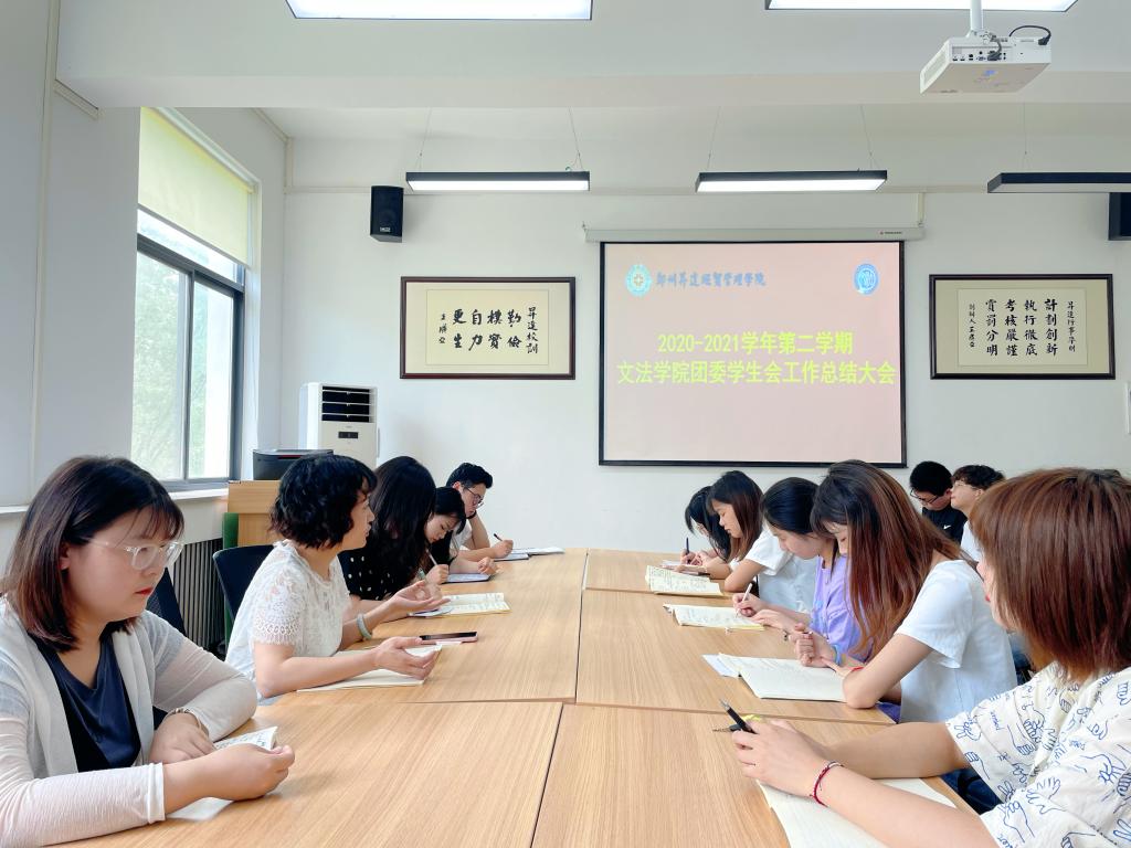 会议伊始,团委员工会各部门代表依次上台发言,对本学期工作进行汇报,分享自己的收获与成长,并由王怡雯代表主席团总结致辞。随后,刘瑜老师讲话,她肯定了各成员为团学工作付出的努力与取得的进步,也指出了本学期共青团工作的不足之处,希望同学们要不断加强学习,做好传承和发扬。最后,郑玲玲老师对各部门本学期举办的特色活动进行点评,并对员工干部提出了以下几点要求:一、员工干部应该提高思想觉悟、规范言行;二、积极参加社会实践增强自身能力;三、临近期末,认真备考,诚信考试。此外,郑老师要求大家提高安全意识,做好安全防护,渡过一个愉快而又充实的假期生活。