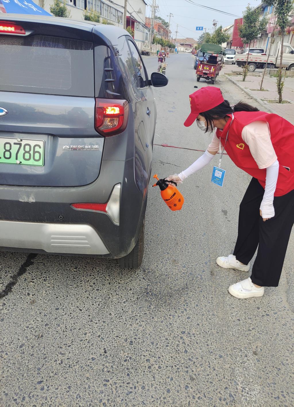 在焦作市温县招贤乡古城村党支部的统一安排下,王媛媛同学作为志愿者与村两委干部、党员在招贤大街西口防疫值班点轮流值班站岗,严格排查登记进出车辆,宣传防疫要求,提醒居民加强防护,减少外出,带好口罩,不要到人员密集场所。烈日炎炎,志愿者们坚守一线,王媛媛同学主要负责登记来往车辆信息,为车辆消毒,提醒过往的行人带好口罩。由于天气温度过高,汗水经常打湿用来登记信息的表格。但是王媛媛同学和其他志愿者们克服高温下的艰苦条件,坚持做到“不漏一车,不放一人”,做好车辆进出登记。“您好,麻烦靠边停,出示一下健康码。”“您好,为了您和他人的安全,出行请戴好口罩。”一遍又一遍的重复防疫安全提醒,筑牢疫情防控的“安全网”。