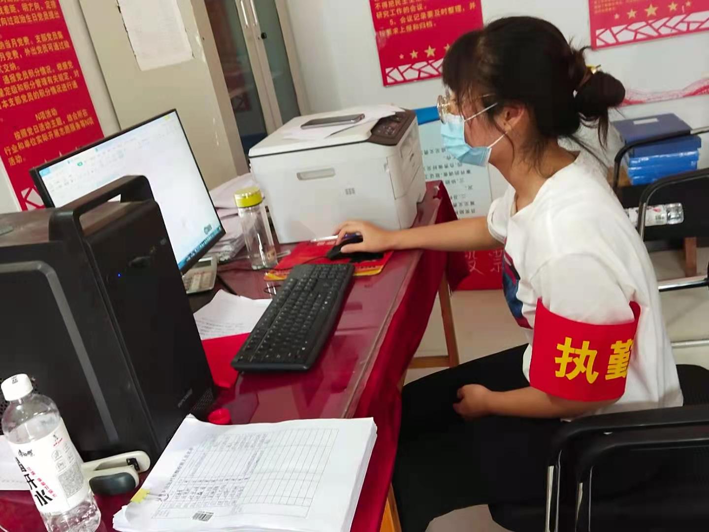 付宛玉同学在录入全村参加核酸检测人员的电子版信息