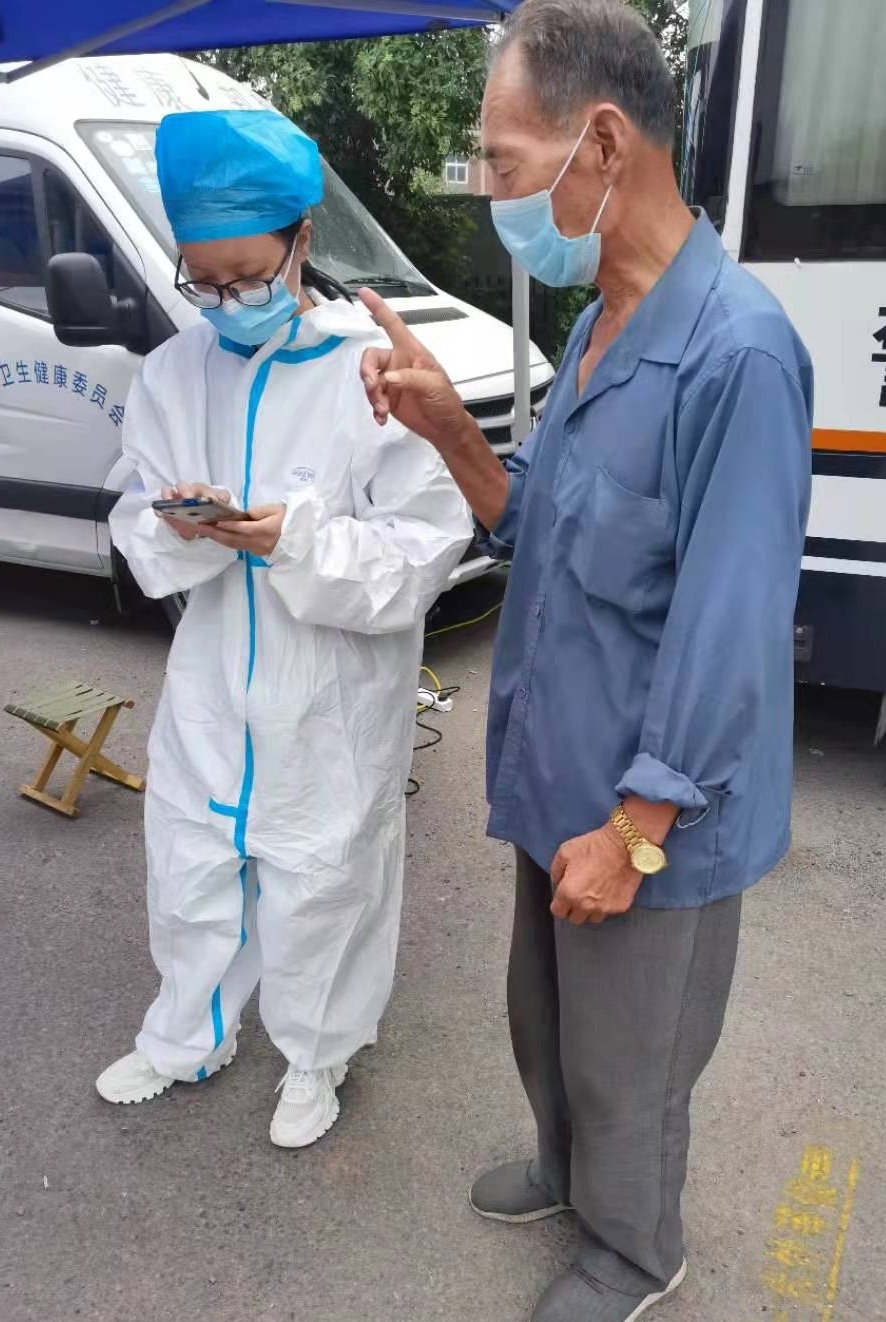 秦笑雨同学主动帮助老年人扫健康码