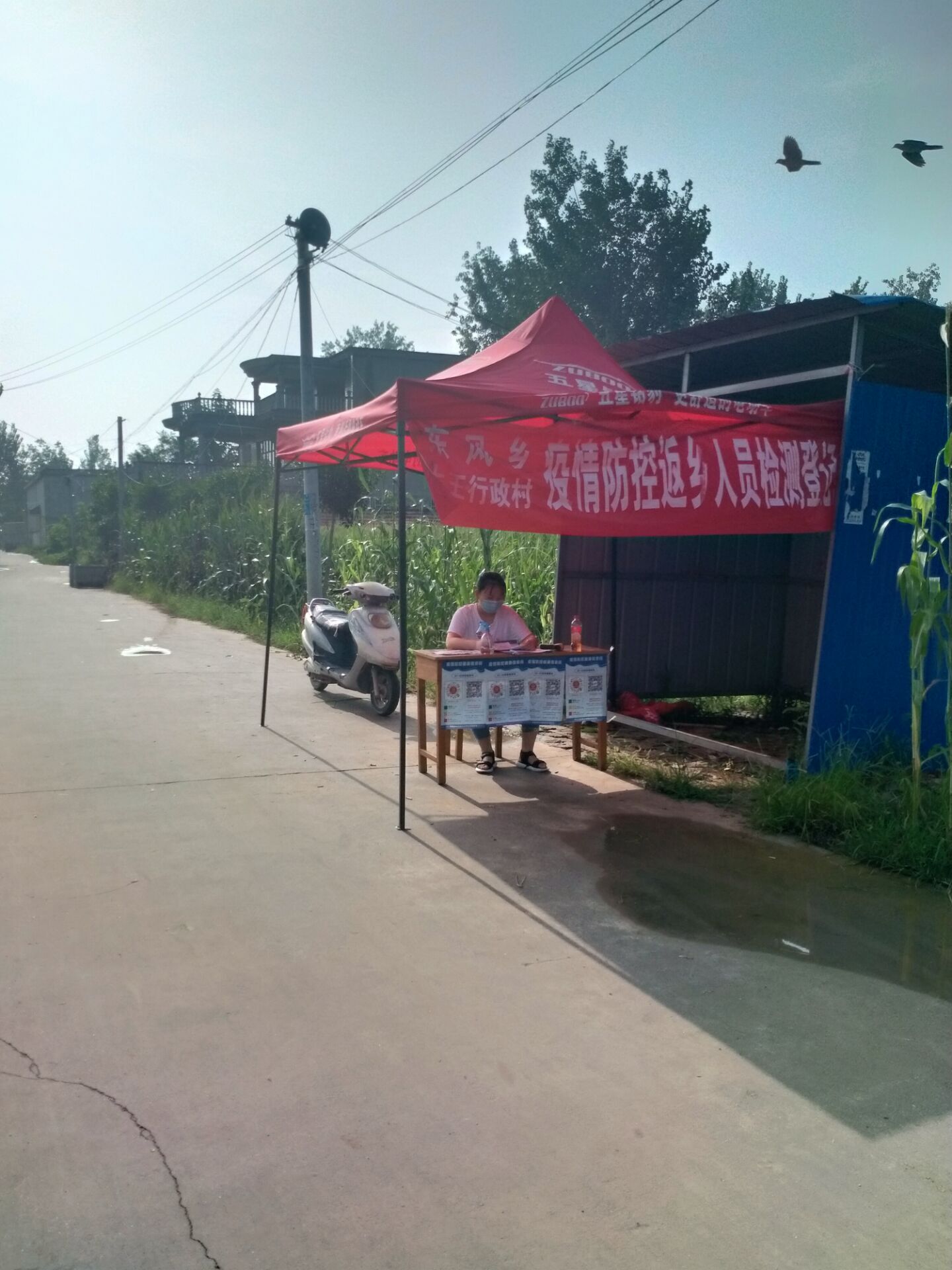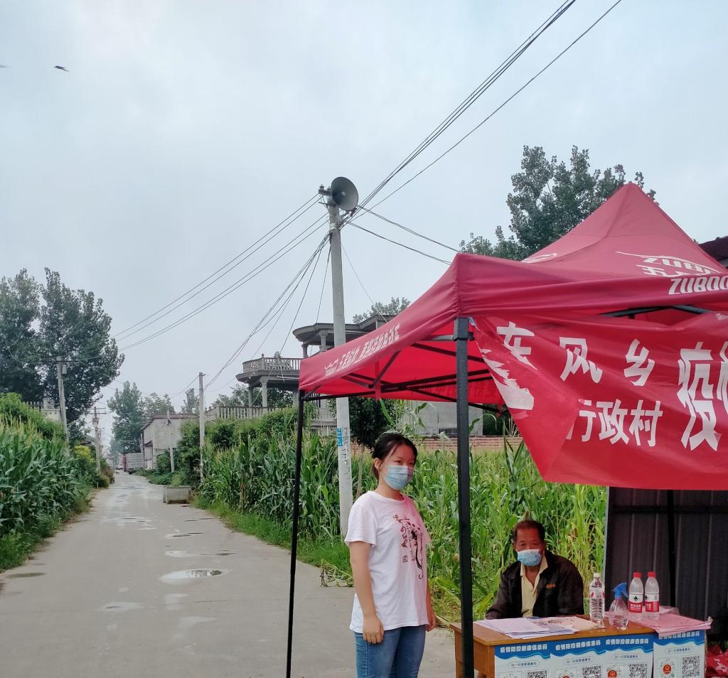 董淑迪同学在村口执勤点值班