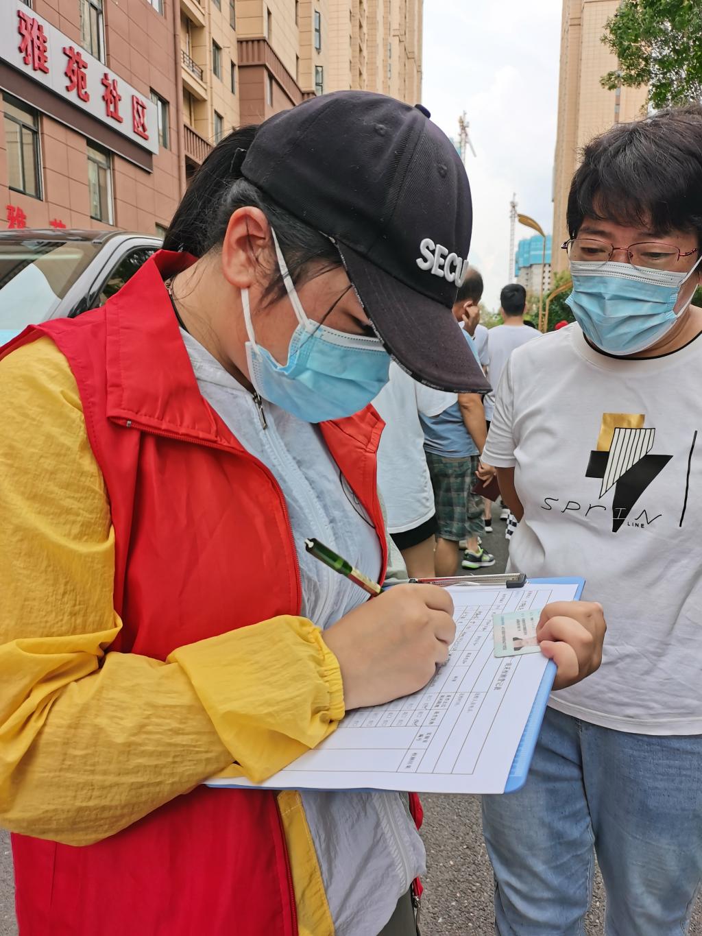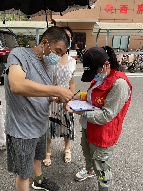 8月8日刘沛含同学所在社区核酸检测工作结束后,她又积极参与到社区日常疫情防控工作中去,按照上级工作要求站岗值班,落实社区出入人员信息登记,引导社区居民扫码测温,充分发挥一名共产党员的责任、担当和先锋模范作用,为疫情防控贡献力量。(供稿人:张喜超)
