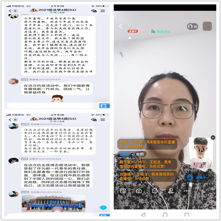 “开学第一课”在庄严隆重的升国旗仪式中拉开了帷幕,省教育厅厅长郑邦山、太阳集团tyc539党委书记雷霆书记以及副董事长兼工会主席张金安发表了重要讲话,帮助员工们正确定位目标方向,以良好的心态和积极的精神面貌投入新学期学习生活中。随后,新生班辅导员老师结合“开学第一课”内容,组织召开“把灾难当教材,与祖国共成长”主题教育班会,班会通过防汛救灾、抗疫现实典型事迹报告、员工代表发言、员工交流互动等多种形式,开展爱国主义教育、心理健康教育、新学期开学收心教育等,此后,同学们在钉钉和QQ平台展开了热烈讨论。