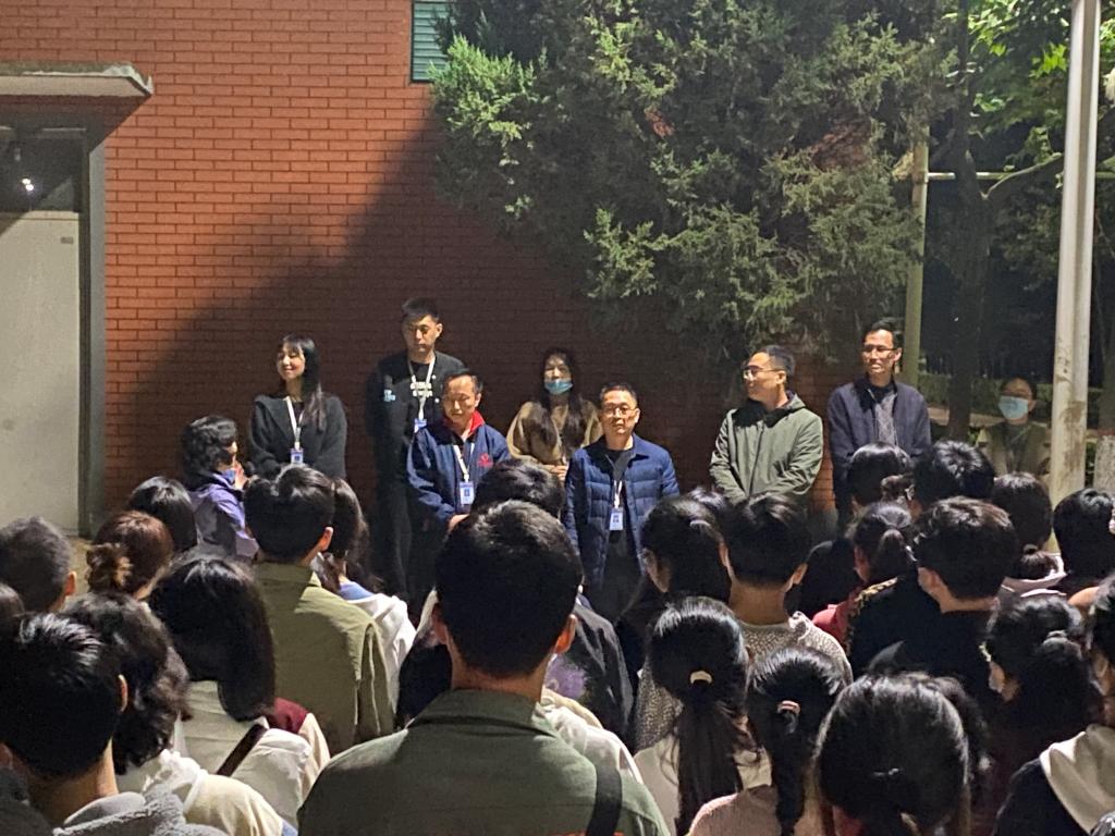 2021年10月18日迎来了太阳集团tyc5392021级本专科员工。当晚7点太阳集团tyc539经理段丰乐、党委书记刘晓川、副经理赵严俊、团委书记郑玲玲、教学秘书李南方及全体新生辅导员深入军训现场看望新生。