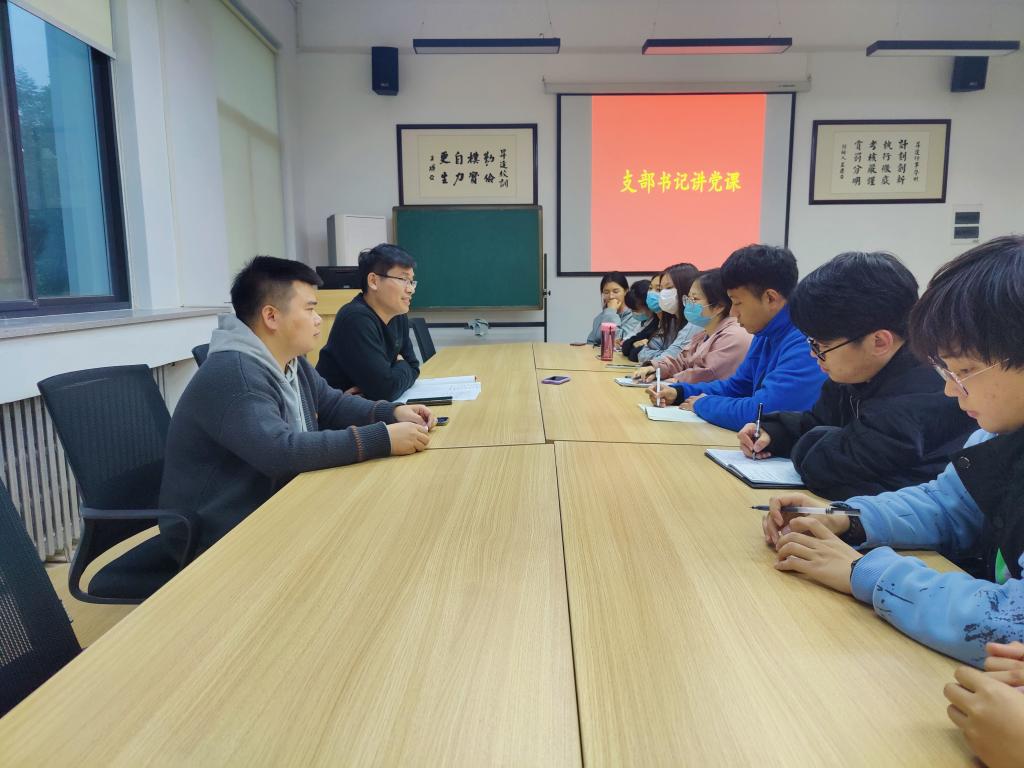 支部书记张喜超老师首先介绍此次党课的主要学习内容,强调党课学习的重要性,张喜超老师强调党史学习可以加强党员对党史知识的全面理解,党史学习是立身做人的永恒主题,也是报国为民的重要思想基础,只有不断进行更新学习,才能把知识真正吃准、弄懂、学透。
