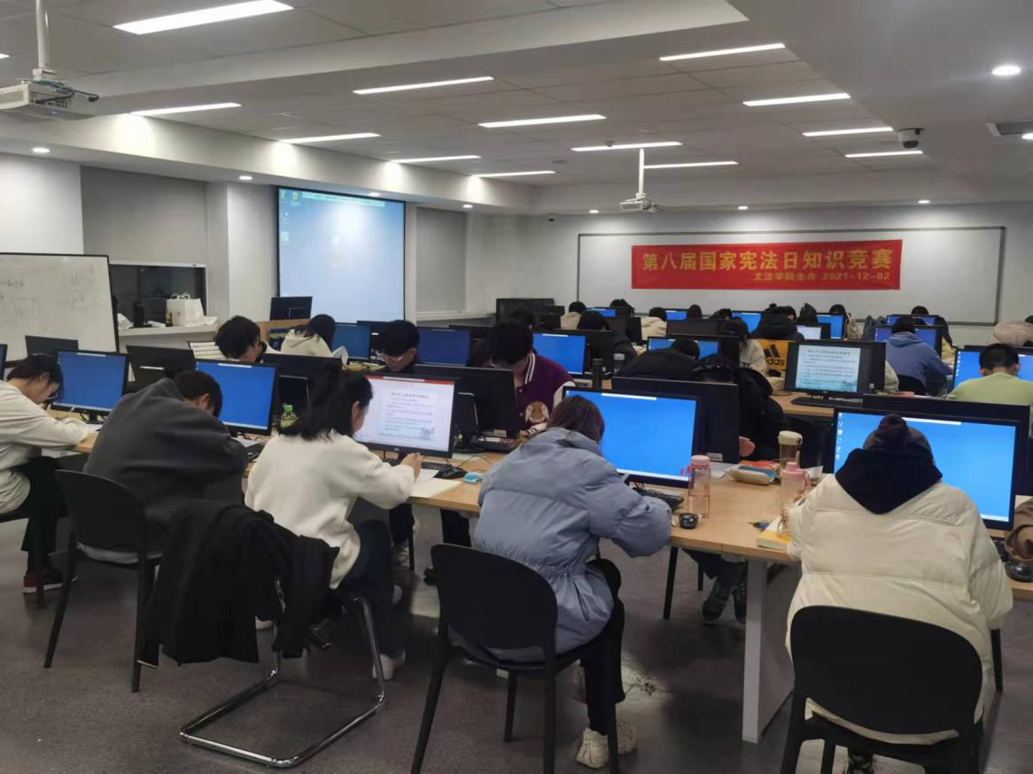 为进一步深入贯彻落实党的十九大和十九届六中全会精神,认真落实习近平总书记关于宪法学习宣传的指示,进一步在全校师生中普及宪法知识、弘扬宪法精神、树立宪法权威,经过前期的安排,太阳集团tyc539于2021年12月2日在太阳集团tyc539案例教学与诉讼模拟实验室举行了第八个国家宪法日知识竞赛活动。