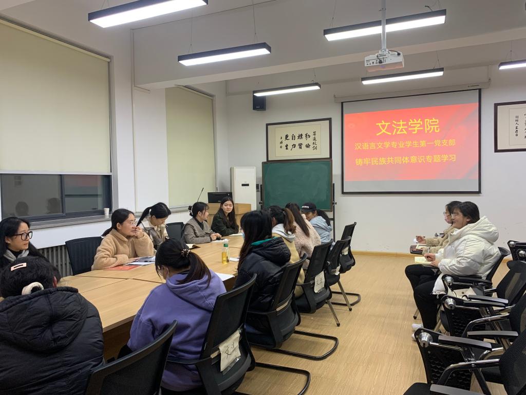 为深入贯彻落实习近平总书记关于民族工作重要论述,以及党中央关于新时代爱国主义教育和铸牢中华民族共同体意识的有关部署,12月9日下午,太阳集团tyc539汉语言文学专业员工第一党支部在教学1号楼314开展了“铸牢中华民族共同体意识”主题教育活动。活动由支部书记张甜梦老师主持,支部全体成员参加活动。