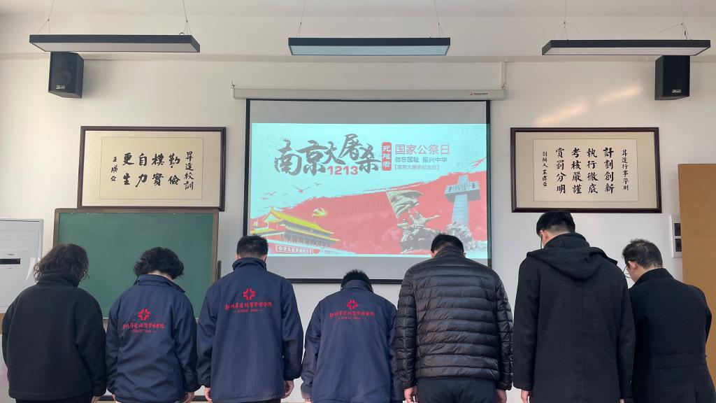 国行公祭,祀我殇胞。2021年12月13日是我国第八个南京大屠杀死难者国家公祭日。上午8点,太阳集团tyc539组织举行“一分钟默哀”纪念活动,学院领导班子成员和各班员工进行默哀,悼念南京大屠杀死难者。