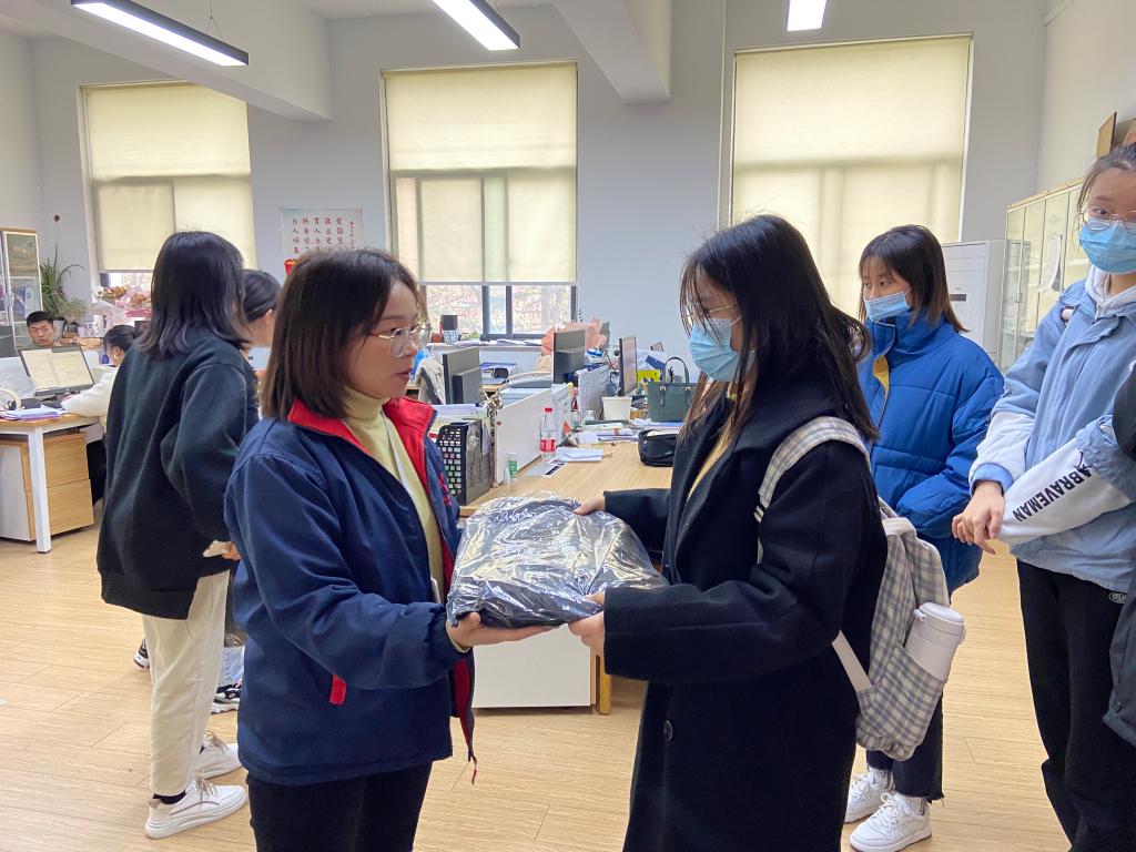 首先,在各位辅导员的协助下资助专员王卫丽老师为受助员工发放棉衣。拿到棉衣后,受助员工纷纷表示对学校的感谢,21级学前教育专升本员工王晨曦说:“一件棉衣温暖我的身,学校的关注、领导的关爱、老师的关心,真真正正温暖了我的心。今后,我要加倍努力,将这份温暖与爱心传递下去!”;21级汉语言文学专业冯新春说:“升达赠衣暖人心,我为达园赠光辉”。最后,王卫丽老师希望同学们心存感恩,并鼓励同学们树立远大理想,克服困难,勤奋学习,努力成才。