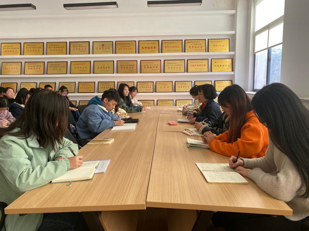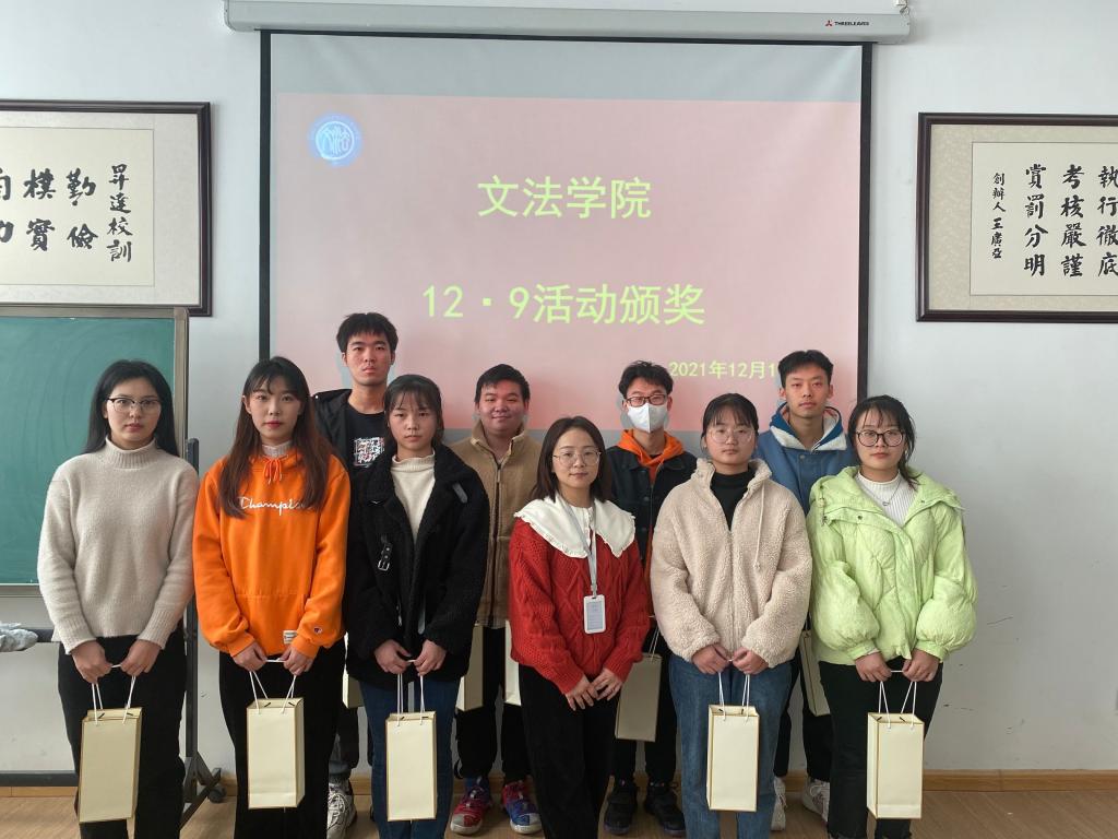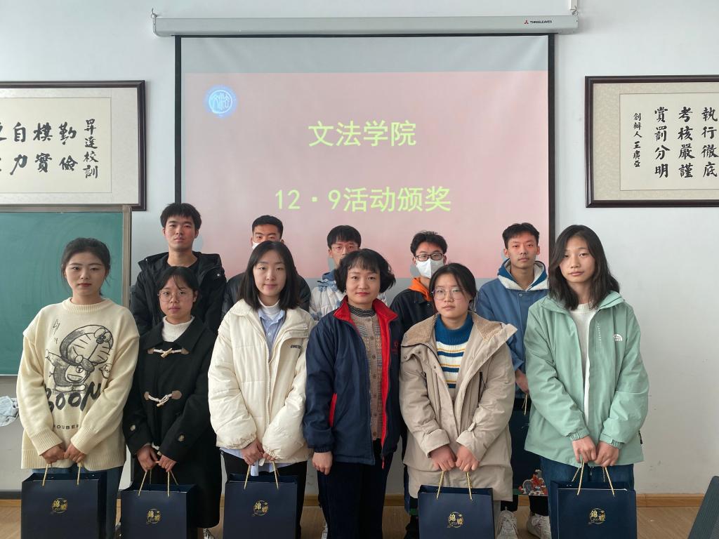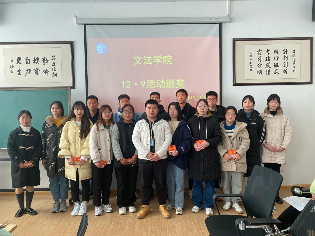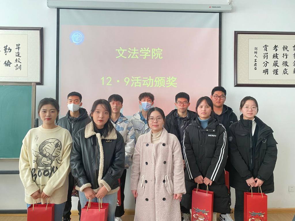 会议伊始,郑玲玲老师首先对本学期的团学工作成果表示肯定,感谢全体成员的辛苦付出。鼓励各位成员在寒假期间积极参加家乡的志愿活动,有一份热,发一份光;在工作方面,也要学会复盘思考,积极学习,利用假期时间“充电”。面对即将到来的期末考试,郑老师建议各位成员对各科知识进行梳理,认真备考,带头对作弊行为说“不”,同时也对假期安全问题进行强调。会议最后,各部门依次对本学期工作做总结汇报。会议最后,各位老师为一二•九活动中表现突出的员工颁奖并合影留念。