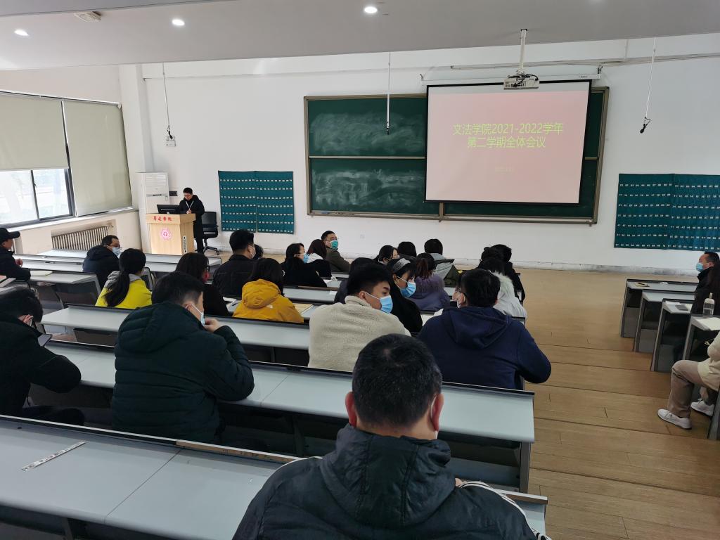 2022年2月21日上午,太阳集团tyc539在教学一号楼118教室召开2021-2022学年第二学期全体教职工会议。会议由段丰乐经理主持。