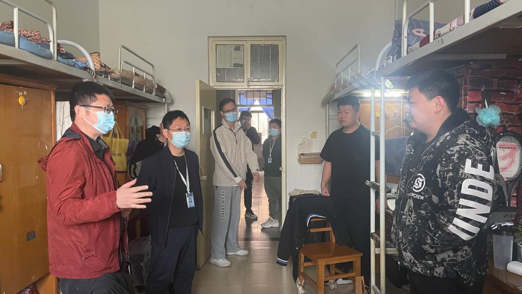 走访过程中,张董事长逐一向同学们介绍学校当前的疫情防控形势和采取的保障措施,详细询问和了解了同学们疫情期间的日常生活和网课学习情况,叮嘱同学们要严格遵循疫情防控期间各项管理规定,按时参加学校组织的核酸检测,遇到困难和问题一定及时向辅导员反馈,做好新形势下的个人防护和自我管理。段经理叮嘱同学们疫情期间一定要注重个人及宿舍卫生,及时通风,确保宿舍安全卫生整洁,希望同学们要认真参加线上课程,保持积极向上的良好心态,大家一起努力,共同营造健康安全有序的良好校园环境。