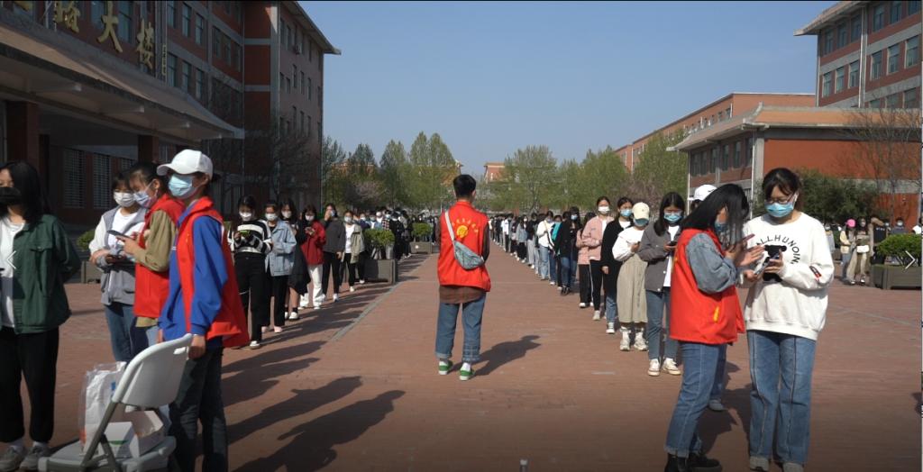 在气温骤升的四月,志愿者和医务人员们长时间在太阳下工作,有同学自发为志愿者和医务人员送水,一瓶瓶矿泉水整齐的摆放在台阶旁。2020级法本2班的王孜硕同学说:“仅仅在我做志愿服务的四次经历中,一名同学就给我们送了三次水。”在志愿者核酸检测扫码过程中,带有遮阳伞的同学主动为志愿者们挡住强光,自觉将手机放低配合志愿者们的工作。送水行为虽微,但给志愿者和医务人员送来一片清凉的慰藉;打伞动作虽小,但抚慰的是志愿者们疲累的心。