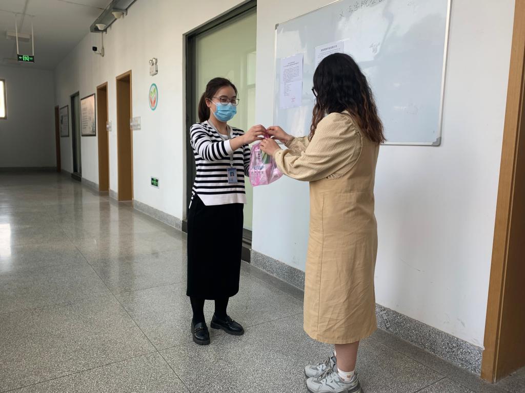 王卫丽老师是两个孩子的母亲,最小的孩子两岁,大的也只有四岁,当听说学校要进行封闭管理时,她挂念校园里她那227名孩子。挥泪与家人和幼儿告别后她毅然选择返回学校,与员工们同在一起。王老师始终秉承情系员工成长,做好良师益友态度,线上与员工沟通交流,帮助员工调节心理状况;线下到员工宿舍看望慰问,关心员工日常学习生活。4月5日深夜一位员工突发胃绞痛,王老师凌晨四点接到员工的求助电话,当即赶到宿舍安抚员工并带其到医务室治疗。王老师用实际行动展现出辅导员强烈的责任感和使命感,扎根学校、守护员工成长。“我也是有孩子的人,看着员工胃痛,我更是着急,她一定是特别难受特别无助才会在深夜给我打电话。那一刻,我哪管得了夜里几点,赶快安顿好员工才是正事。”王老师说。