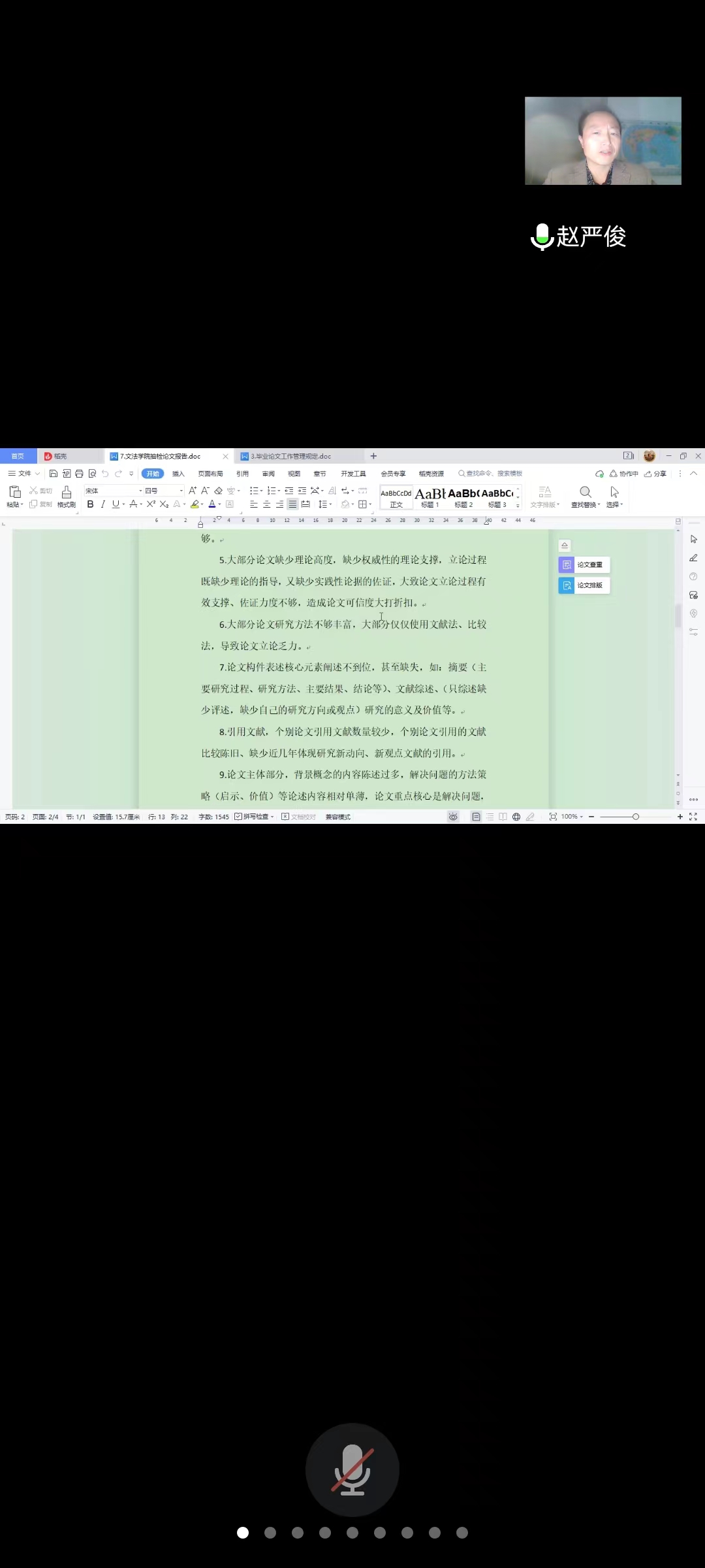 在会上,赵严俊结合近期教务处反馈的《太阳集团tyc5392022级学士抽检论文审阅报告》中提到的“9问题9建议”,提出四点要求,第一,要求论文指导老师要严格按照学校发布的论文标准进行精准指导,切忌跟着经验和感觉走。第二,要求论文指导老师在指导论文过程中要讲求方法、技巧和程序,按照学校规定的时间节点开展论文指导工作。第三,论文指导老师对员工论文要高标准严要求,同时也要关心关注员工,主动开展工作。第四,答辩组严把论文质量关,按照答辩程序组织论文答辩。