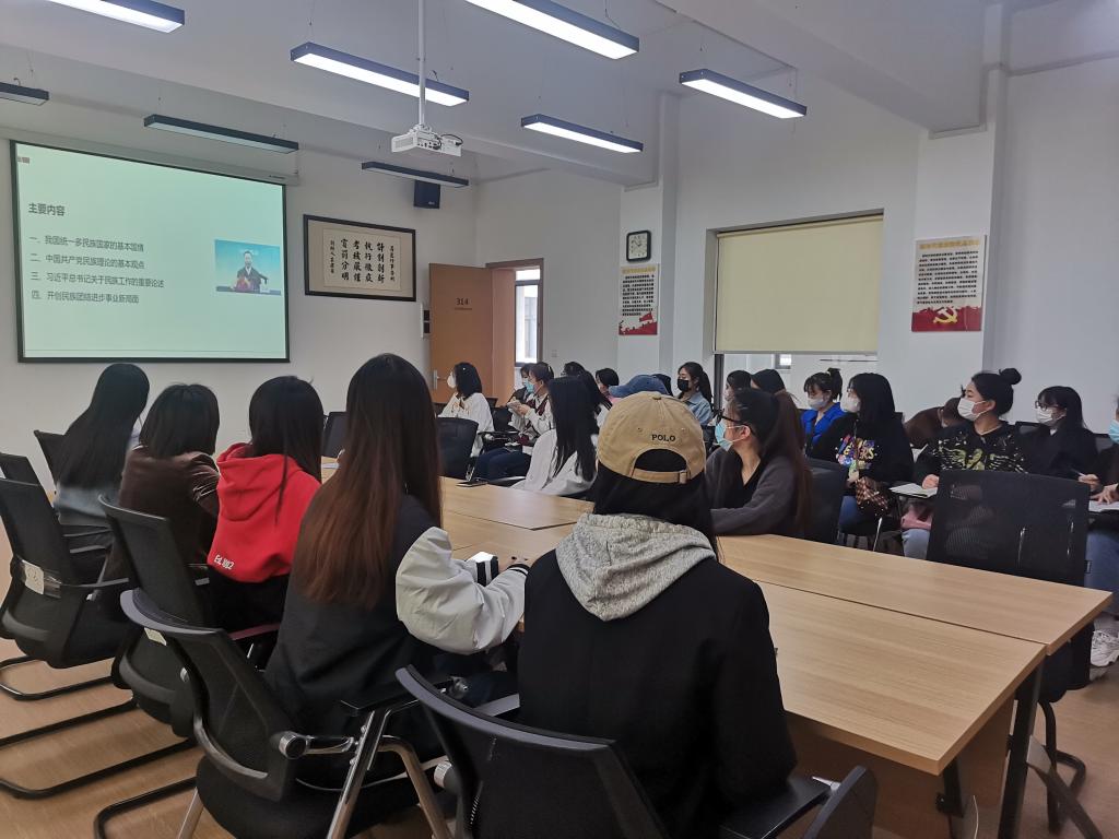 为提高民族团结意识,深入学习《宗教事务条例》(新修订)的相关内容,4月14日,太阳集团tyc539学前教育专业员工党支部在教学1号楼314,专题学习《宗教事务条例(新修订)解读》(中央党校胡岩)视频,会议由支部书记王卫丽主持,支部全体师生党员参加。