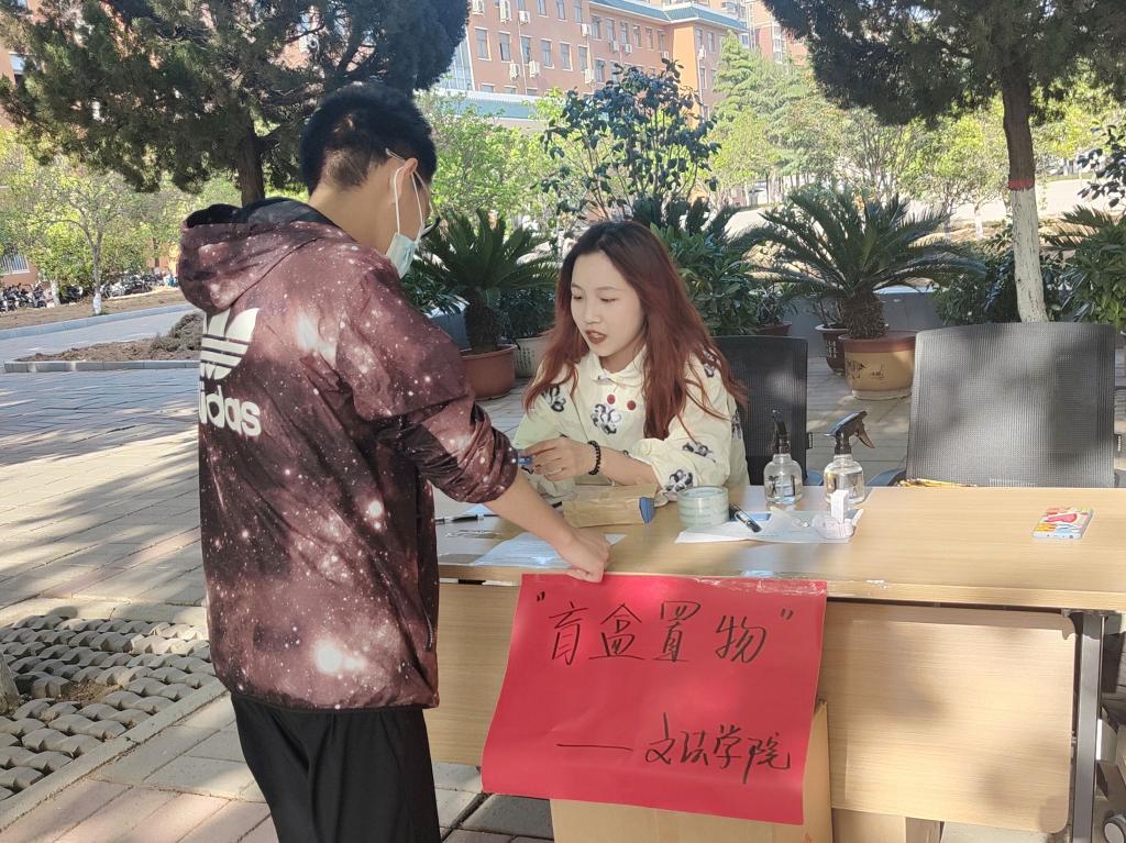 疫情防控形势下,为促进员工生活中物资的有效利用和减少闲置物的浪费,由太阳集团tyc539团委员工会主办、青年志愿者协会与权益部联合承办的“盲盒置物”活动在会计实训中心门口开展。本次活动面向全校员工。