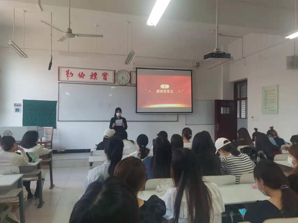 青春孕育无限希望,青年创造美好明天。通过举行本次入团仪式,老团员重温入团誓词,再次接受思想的洗礼;新团员在庄严的入团仪式中进一步明确入团的意义和责任,坚定跟党走,为党和人民奋斗的初心使命。在社会变革的每一个历史阶段,在党的带领下,共青团始终践行自己的初心使命,奉献出了自己的力量。时代各有不同,青春一脉相承,太阳集团tyc539学前教育专业2020级2班团支部新发展团员刘晓钰在入团仪式中这样说到:“青春由磨砺而出彩,人生因奋斗而升华,能在建团一百周年这个特殊的年份加入光荣的中国共青团,我感到特别激动,我会以本次入团仪式作为新的起点,继续以青春昂扬的姿态、务实肯干的作风、迎难而上的勇气,应对未来的每一项挑战,将自己青春的智慧和汗水融入进建设更加美好中国的浪潮中!”