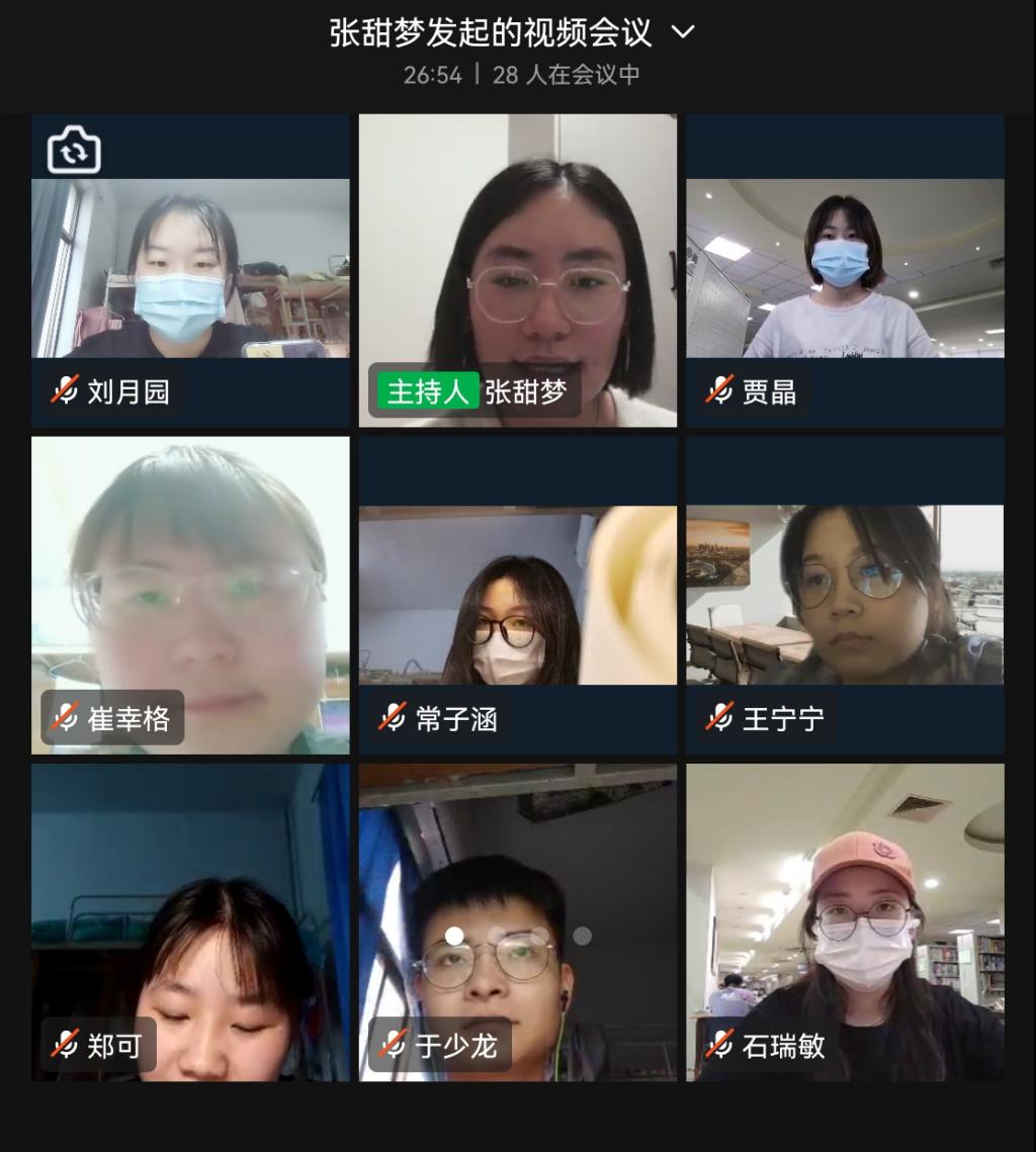 张甜梦书记带领师生党员学习了中共中央政治局常务委员会召开的疫情防控会议精神、河南省委新冠疫情防控工作第十七次专题会议精神,张甜梦进一步强调了做好疫情防控工作的重要性,鼓励师生党员要坚定信心,同舟共济,团结一心,做好疫情防控工作。员工党员孙佳敏和齐晓可同学分享近段时间自己在疫情防控工作中的担当与作为。
