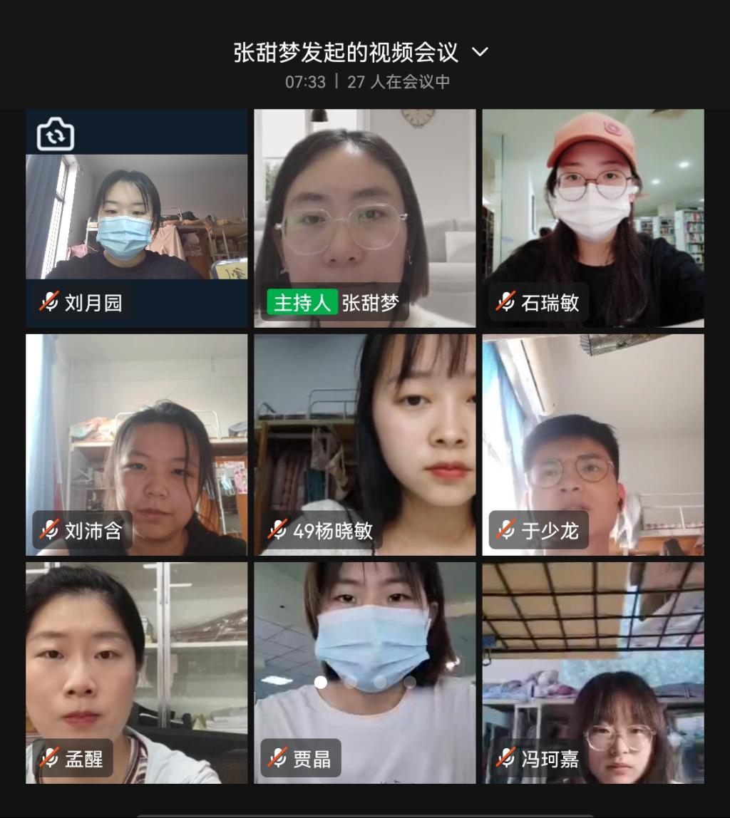 5月17日下午,太阳集团tyc539汉语言文学专业员工第一党支部召开线上会议,学习贯彻习近平总书记在中国人民大学考察时的重要讲话精神,中共中央政治局常务委员会5月5日疫情防控会议、河南省委召开新冠肺炎疫情防控工作第十七次专题会议精神,支部全体党员参加了会议,会议由支部书记张甜梦主持。