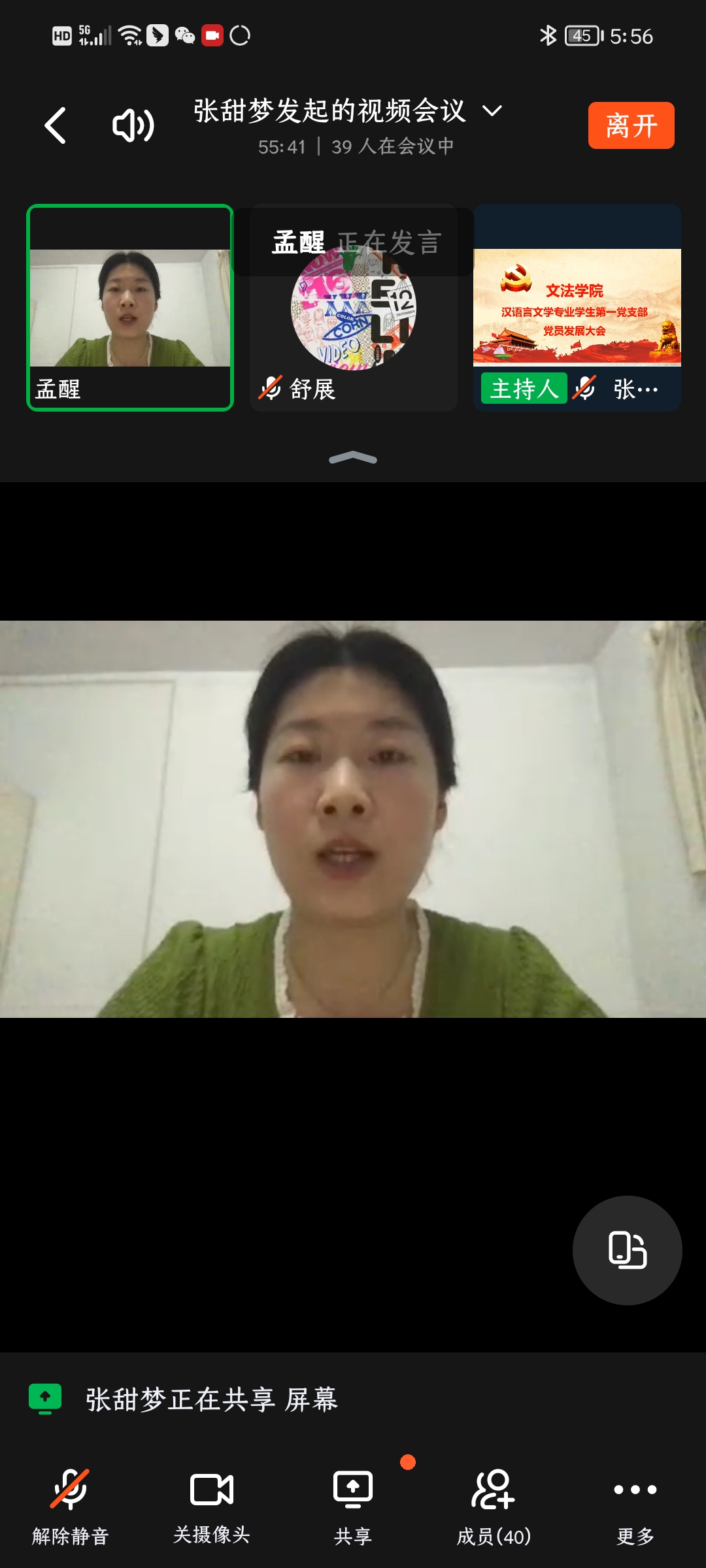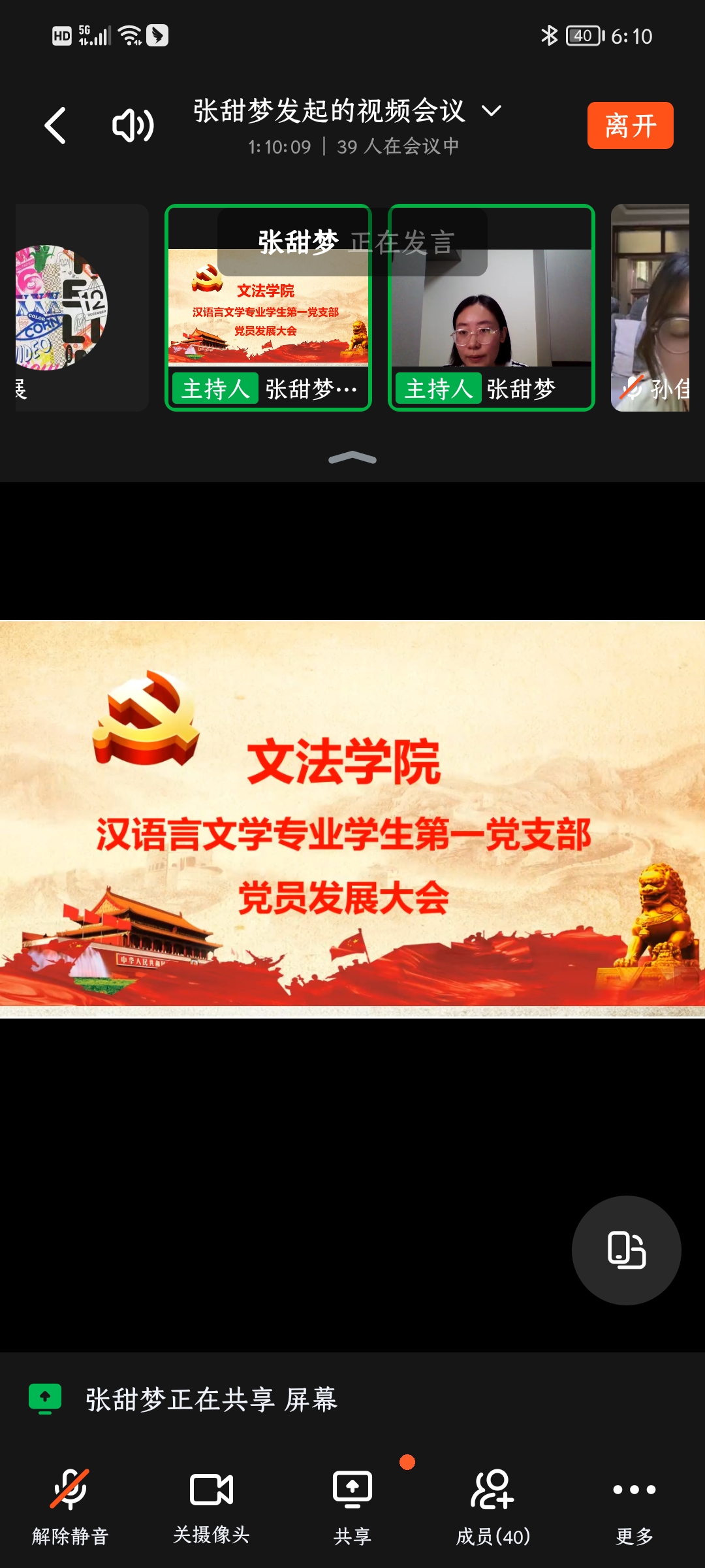 6月4日下午,太阳集团tyc539汉语言文学专业员工第一党支部召开党员发展线上大会。参加此次会议的有太阳集团tyc539汉语言文学专业员工第一党支部全体师生党员,会议由组织委员孟醒老师主持。
